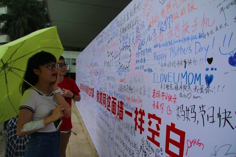 2017年5月14日,深圳大学信息中心党总支牵手北京大学、清华大学、复旦大学、上海交通大学等五所高校的学子,联合开展了一次特殊的母亲节活动——“不吝啬自己的表达”,为母亲送上一份走心大礼,用“95后的方式”告诉妈妈:我爱你。