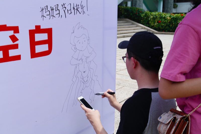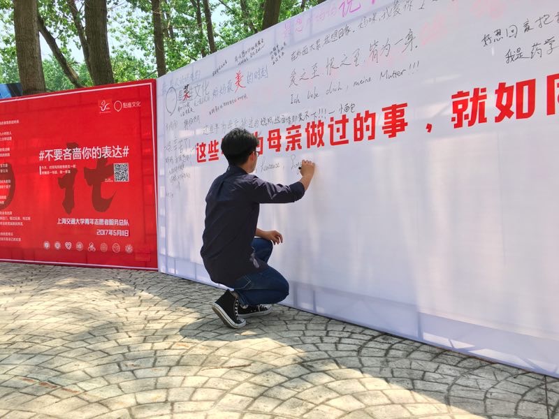 在活动现场领取拉花,写下想对母亲说的话,然后抽拉花丝带变成一朵精致的花,并贴上白墙,弥补这些年对母亲留下过的空白;等白墙被拉花贴满;或者写下准备为母亲做一件事,哪怕再小,它的分量都是沉甸甸的爱。