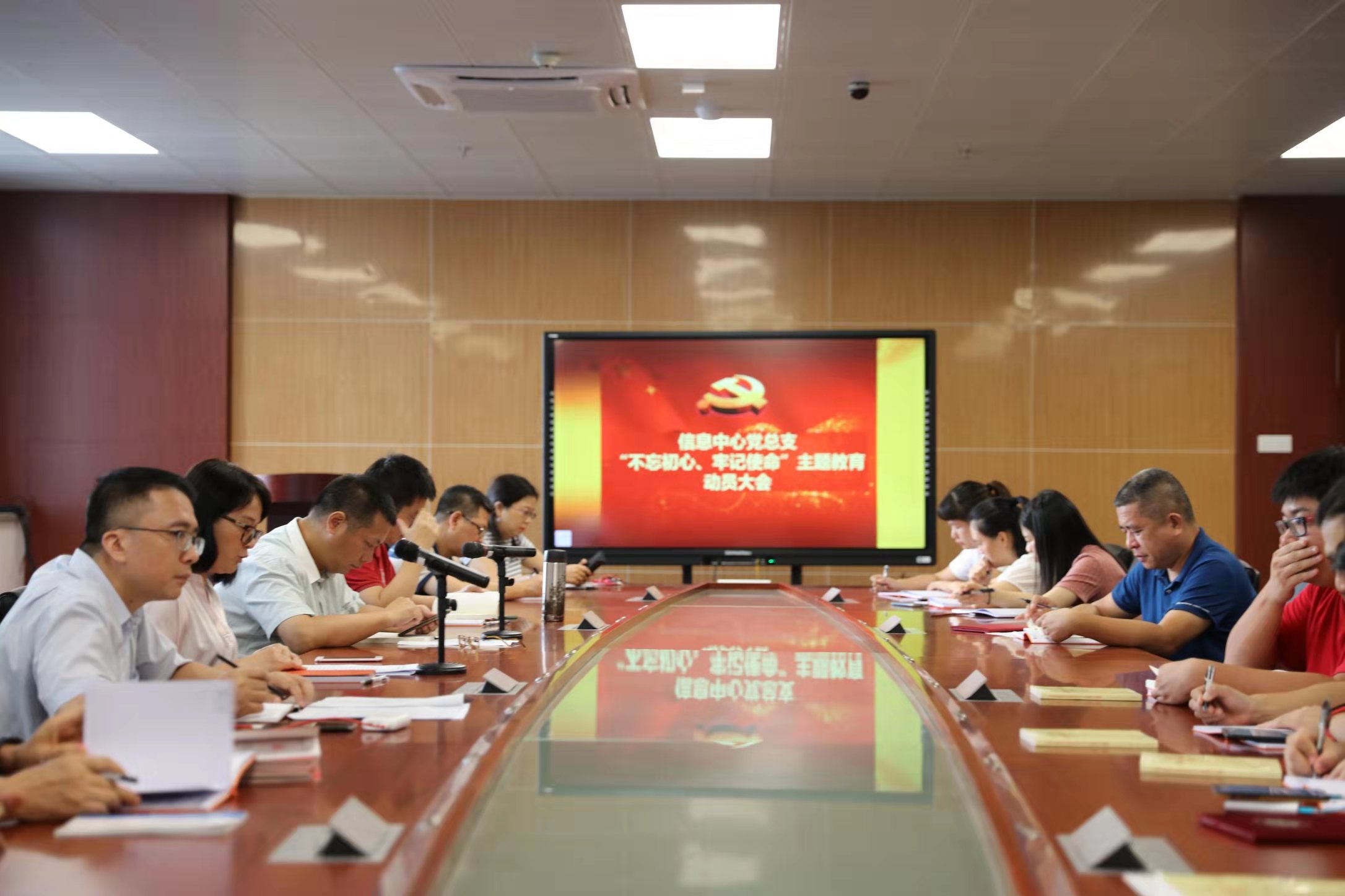 2019年9月16日下午,信息中心全体党员齐聚致理楼11楼会议室,召开“不忘初心、牢记使命”主题教育动员大会,中心党总支书记邱妙芳作动员讲话。大会由总支支委、中心主任王志强主持。