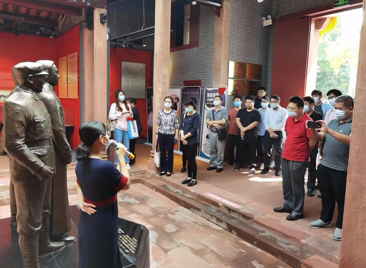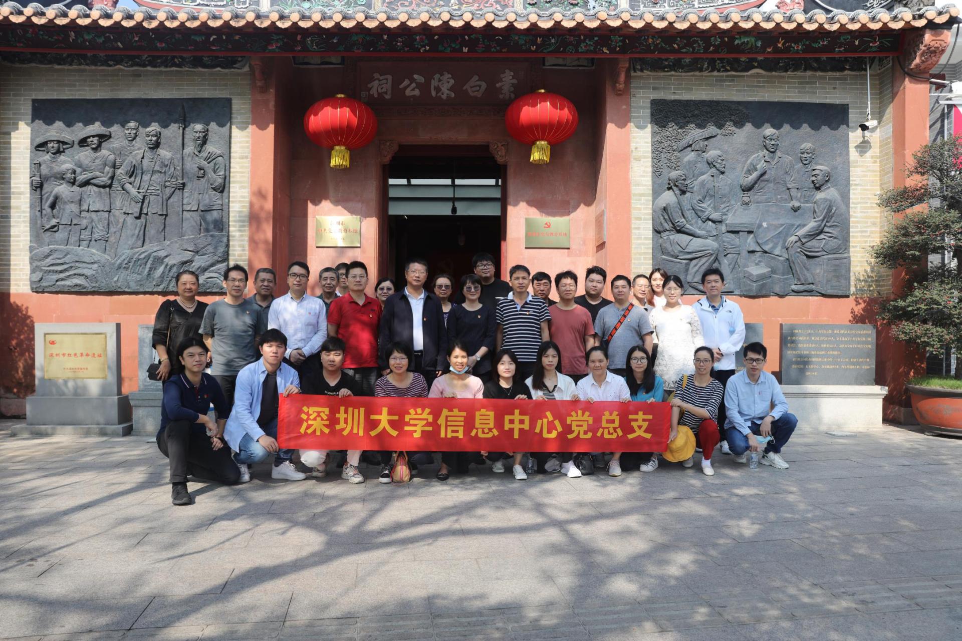 2021年10月29日上午,空气清爽宜人。迎着清晨的朝阳,中心党总支全体党员兴高采烈,赴宝安一大会址开展党日活动,总支书记邱妙芳、主任王志强、副主任秦斌、江魁同30余名党员和入党积极分子一道参加了活动。