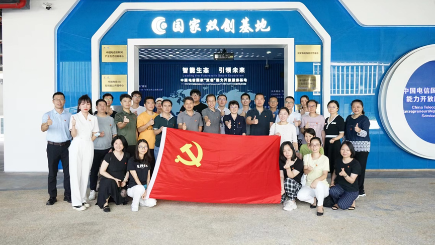2022年6月23日上午,信息中心党总支走进中国电信国家双创基地,与中国电信深圳分公司联合开展党日活动,在国家双创基地进行参观交流学习。中心党总支书记邱妙芳、副主任江魁带领中心党员和入党积极分子参加了活动。