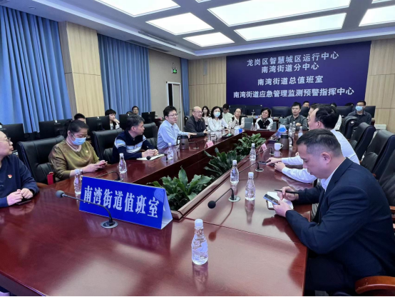 秦斌首先向南湾街道说明了此行考察交流的目的,表示希望了解南湾街道解决民意诉求的途径、社会治理方式方法、办事流程等,南湾的经验将对中心解决信息化服务过程中的痛点难点和师生诉求具有重要的借鉴和学习参考价值。