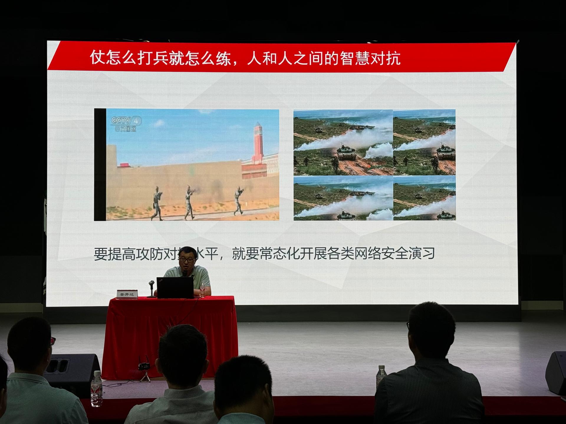 陈昊在致辞中表示,学校一直高度重视网络安全建设,组建了一支技术娴熟经验丰富的网络安全团队,负责全校的网络安全的日常管理和应急响应工作。信息中心近年来建立了完善的网络安全保障体系,并加强了网络安全监测和预警能力,还组织了网络安全学生社团积极参加国内大赛,取得了包括全国一等奖在内的一些奖项,培养出了一批优秀的网络安全专业人才,但是跟上海交大相比差距还较大。同时信息中心也通过开展网络安全的教育活动,向师生普及网络安全的知识和技能,增强师生的网络安全意识和防范能力,因此今天学校举办网络安全宣传周的主题讲座活动非常有必要且很有意义。陈昊还表示在今年暑期务虚会上,学校主要领导要求我们向国内顶尖、世界一流的高校学习信息化建设的先进经验,因此这次讲座我们很荣幸地邀请到了国内顶尖的网络安全技术专家——上海交大网信中心姜开达副主任来做讲座。