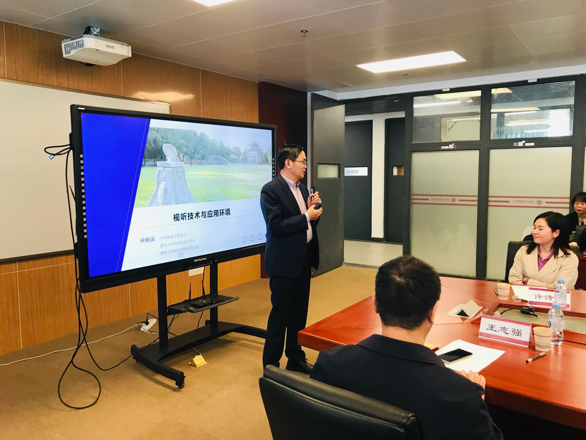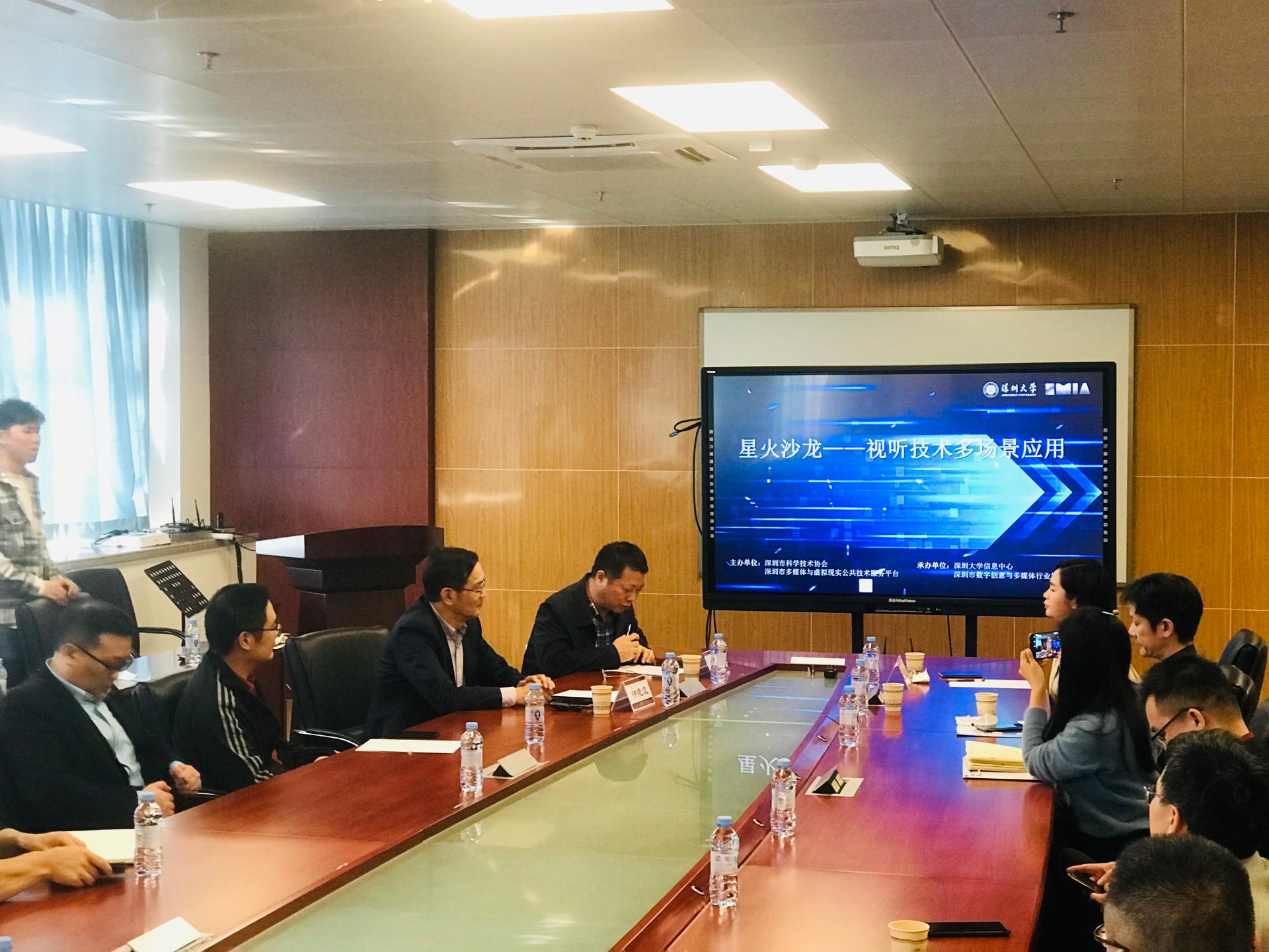 2021年12月8日下午,由深圳市科学技术协会、深圳市多媒体与虚拟现实公共技术服务平台主办,我中心和深圳市数字创意与多媒体行业协会(以下简称协会)联合承办的“视听技术多场景应用”星火沙龙,在沧海校区致理楼11楼会议室开讲,来自协会的众多企业界人士、中心的部分技术骨干共50余人参加了活动。沙龙由协会负责人主持,中心主任、平台负责人王志强教授做开场致辞,并邀请了清华大学信息化技术中心总工程师、深圳国际研究生院钟晓流教授做“视听技术与应用环境”的报告。