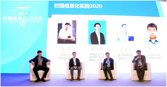 当前,高校普遍关注的信息化重点工作和实践有哪些?华南理工大学副首席信息官兼网信办主任陆以勤、电子科技大学信息中心主任侯孟书、北京化工大学信息化办公室主任李征围绕“校园信息化实践2020”话题展开研讨,研讨由天津大学信网中心主任刘峰主持。