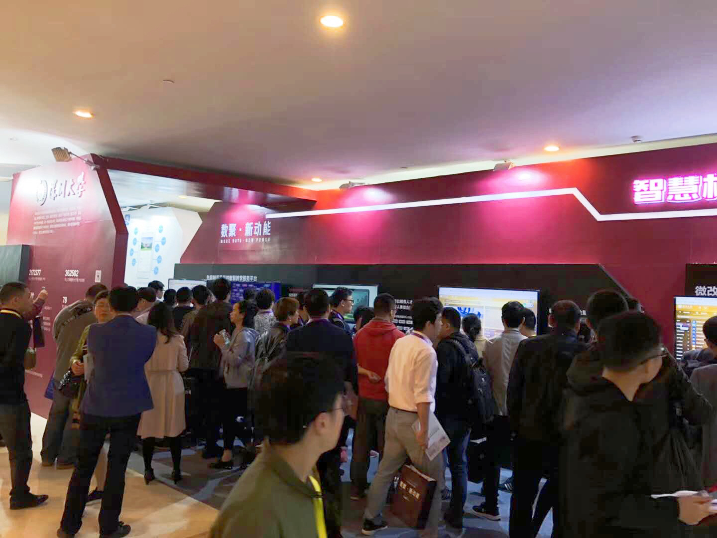 深圳大学的信息化建设展区,吸引了众多高校老师的目光。展区以文字墙形式呈现了我校信息化建设成果,包括网上师生服务办事大厅、学工服务、人事管理服务、研究生综合服务以及本科生教务服务等信息化服务平台,随着应用场景的不断细化、数据的持续积累,面向师生个人的服务价值和用户体验开始全面升级,展示了我校信息化建设从“数字化”逐渐走向“智慧化”的历程。