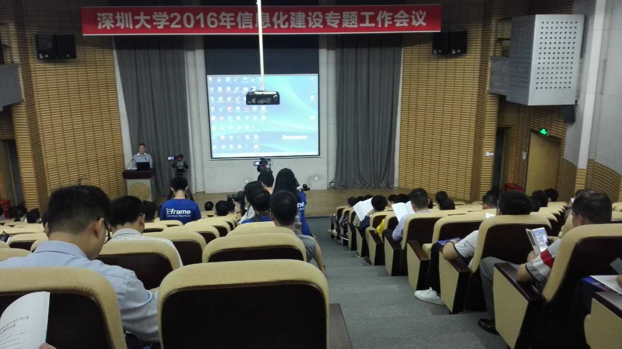 2016年11月16日上午,深圳大学信息化建设专题工作会议在科技楼二号报告厅举行,我校信息化领导小组成员、各学院负责信息化及信息安全的院领导、机关各部室正职领导、各单位登记的信息联络员以及信息中心相关的工作人员参加了会议。在会上,李清泉校长就我校的信息化工作和未来的发展做了重要讲话。会议由信息中心总支书记欧阳康主持,信息中心主任王又民作中心发言,图书馆陈大庆书记、教务部刘宏伟副主任、学生部程浩主任也相继发言,徐晨副校长作会议总结。