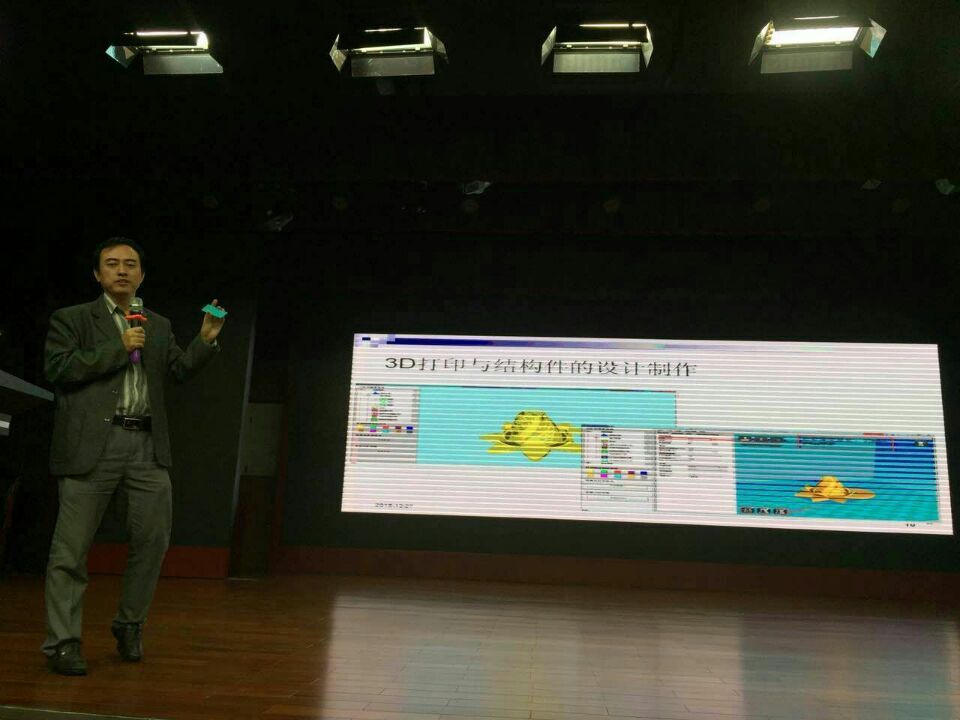 本次论坛深入地探讨了创客教育的理论基础、创客教育课程开发方法、开源软硬件技术应用、创客教育产品开发、应用案例等大家最为关注的问题,服务于中小学校的创客教育实践,推进创客教师的成长与发展。徐明创客教育工作室应邀参加了本次论坛,做了“智能硬件、3D打印与创意机器人教学”的专题报告,向大家分享工作室的最新研究工作。