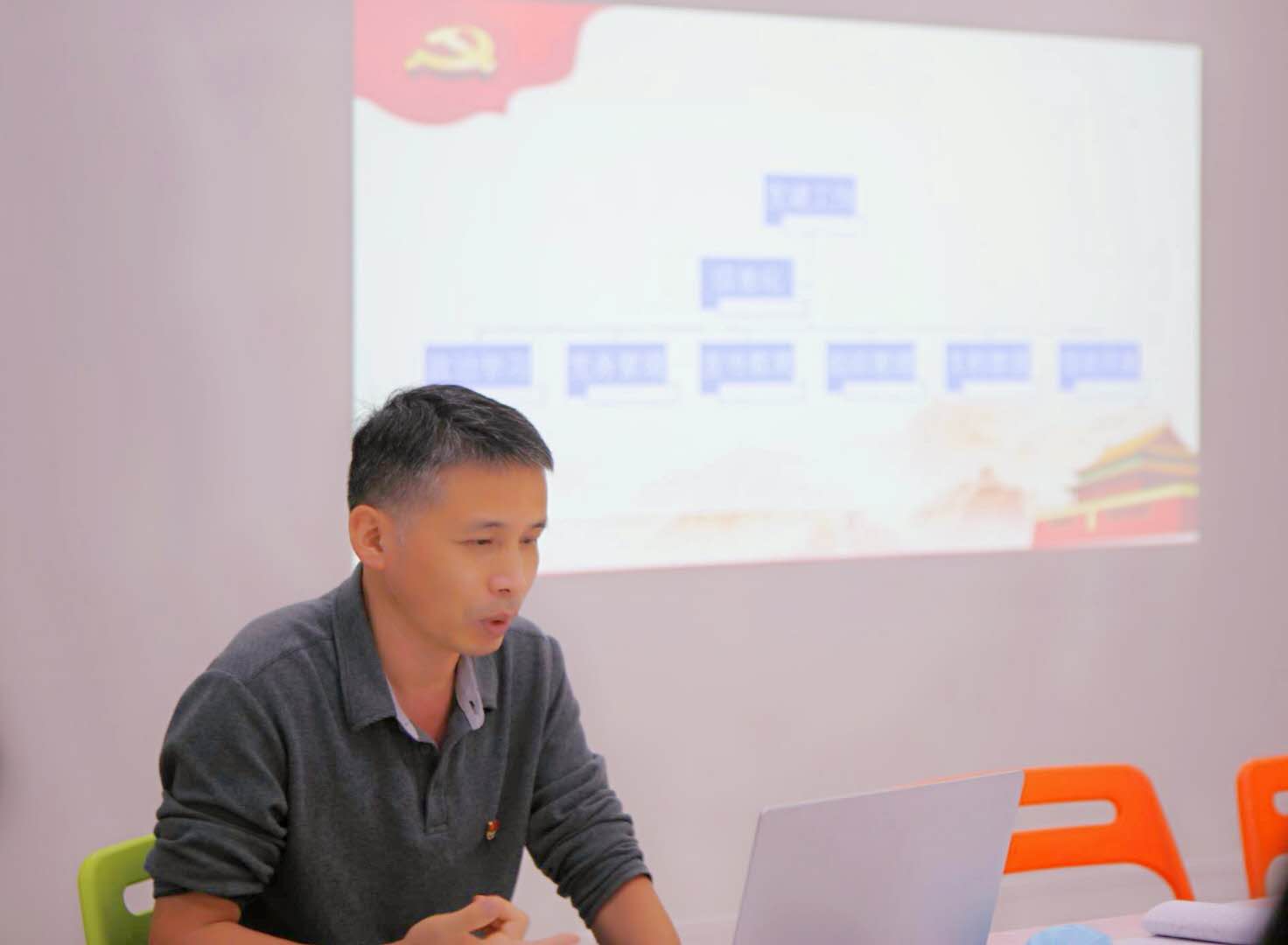 图书馆胡振宁书记充分肯定了信息中心的党建工作以及应用信息化开展党建的特色之处,认为党建信息化非常重要,现在从中央到地方都很重视网络文化,习近平总书记一直强调要媒体融合,都是重视党建信息化工作的具体表现。有很多网站都是我们日常学习经常用到的,包括共产党员网、学习强国平台,以及一些用于理论学习的辅导和参考工具。在学习形式上图书馆也和大家一样,注重利用新媒体平台进行学习,包括阅读推广活动,尤其注重数字化创新发展、在线学习、网站建设方面,曾经还做过广东高校党建资讯网站,并运营了两三年。他还向大家介绍了一款京东阅读APP,可以用来阅读马克思主义基本原理等著作和很多政治理论书籍。