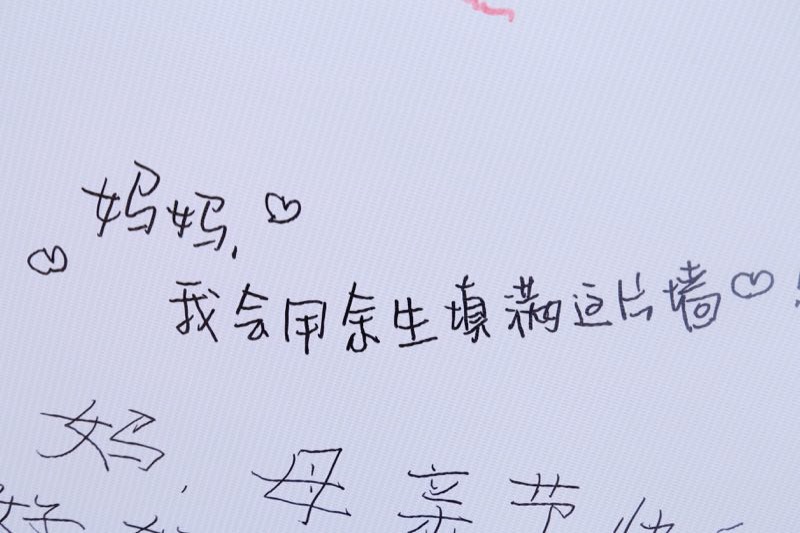 在活动现场领取拉花,写下想对母亲说的话,然后抽拉花丝带变成一朵精致的花,并贴上白墙,弥补这些年对母亲留下过的空白;等白墙被拉花贴满;或者写下准备为母亲做一件事,哪怕再小,它的分量都是沉甸甸的爱。