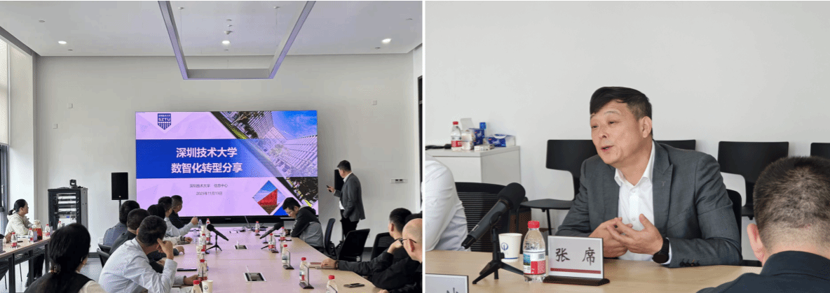 为深入学习贯彻落实习近平总书记关于作风建设的重要讲话重要指示精神,认真落实我校开展“深入践行‘三自’精神,同心奋楫‘双一流’”作风大提升主题实践活动要求,2025年11月13日,我校信息中心党总支书记秦斌及相关部门负责人一行赴深圳技术大学信息中心开展调研交流活动。深圳技术大学信息中心主任张席、网络安全技术科等相关部门负责人热情接待并参与了座谈,深圳市高校教育信息化学会副秘书长白熙及相关技术骨干一同参与了调研交流。