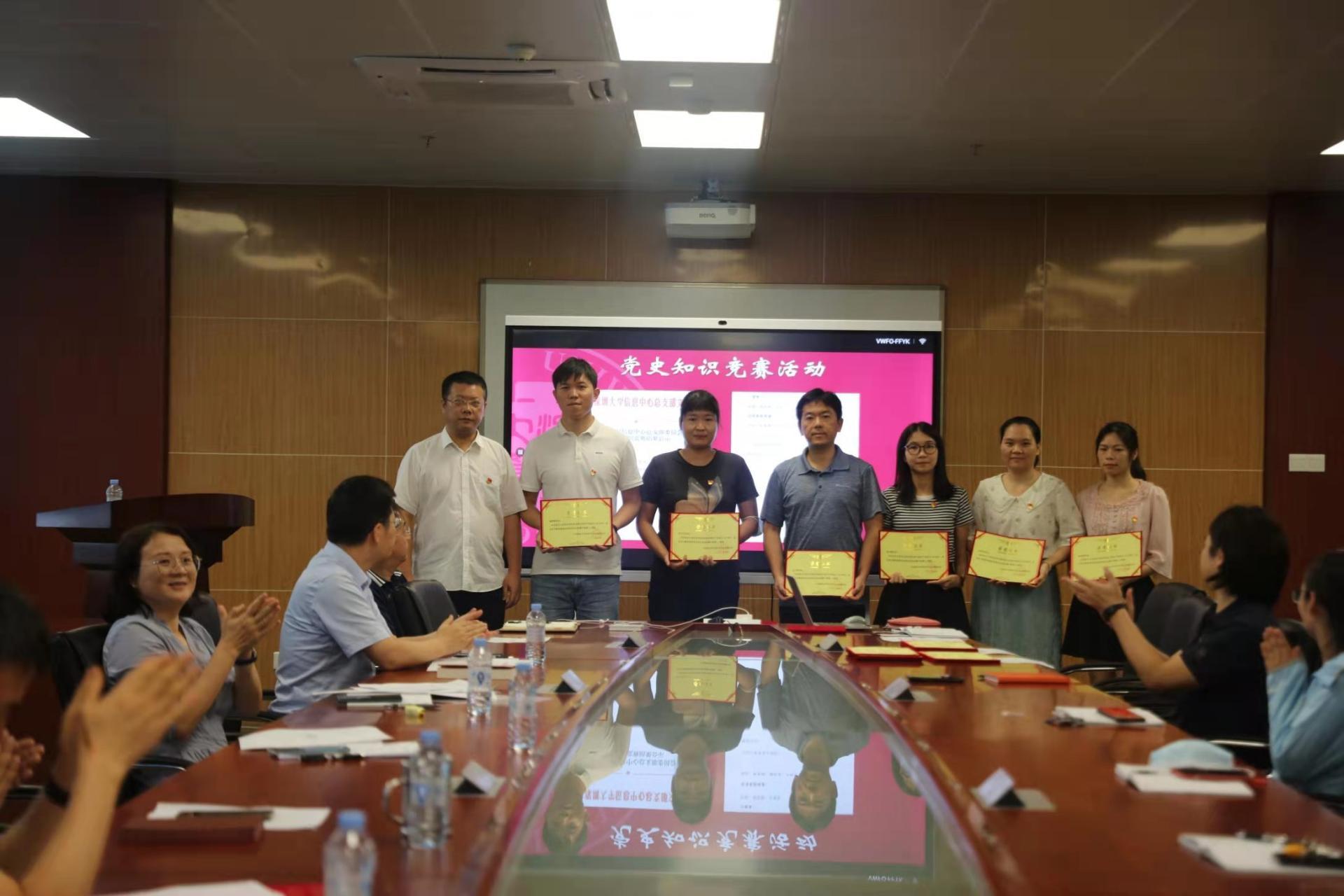 为深入开展党史学习教育,回顾党的奋斗历史,继承和发扬党的光荣传统和优良作风,进一步增强党组织的凝聚力和战斗力,以赛促学、以学促用,进一步学习掌握党的历史、党的理论、党的路线方针政策等方面的知识,党总支决定开展党史知识竞赛活动。竞赛内容包括:党史党情、党章党规、习近平总书记系列重要讲话精神、习近平总书记对广东深圳工作的重要批示等等。经过初赛和复赛两轮角逐,最终侯旦旦获得一等奖,陈旭琳、林巧庭获二等奖,刘锐、胡凯峰、王苑芳获三等奖,陈虹、彭燕妮、潘柏丞、户利利等获优秀奖。王志强主任为以上获奖老师颁发了荣誉证书和精美的礼品。