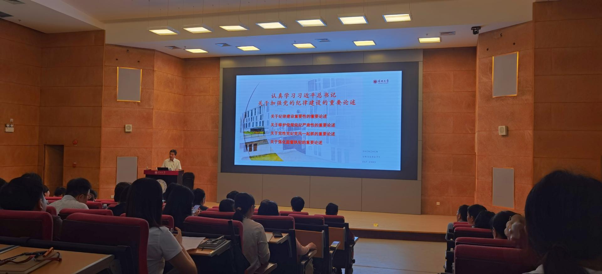 6月7日下午,信息中心党总支与机电与控制工程学院、高等研究院、金融科技学院等13家单位共300余人联合举办党纪学习教育会,听取《加强党纪学习教育,以严明纪律护航学校高质量发展》的专题讲座,由我校党委副书记兼纪委书记王月兴主讲。本次学习会在机电与控制工程学院报告厅举办,中心总支书记秦斌以及陈昊主任、钱恭斌副主任、江魁副主任参加了学习。