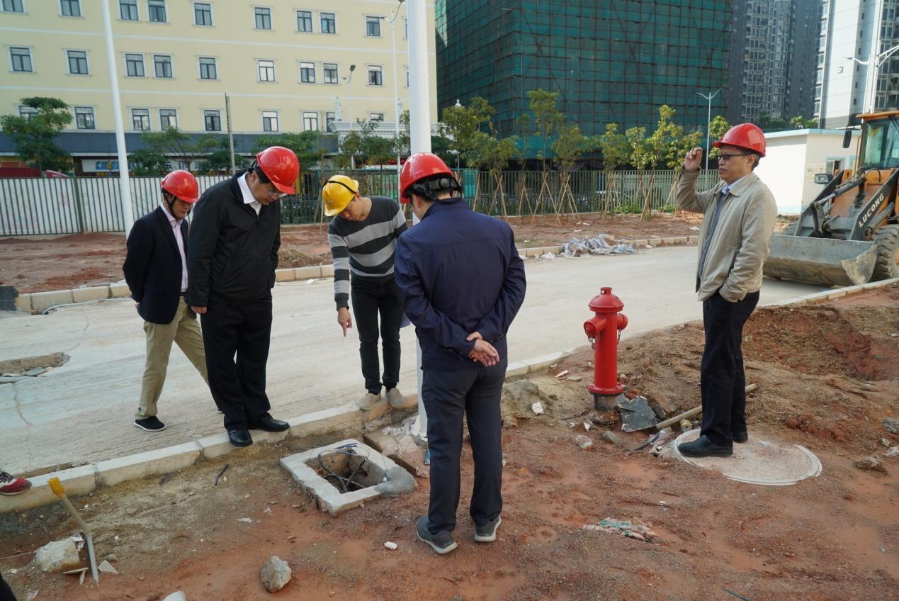 徐副校长一行深入到每一栋建筑、每一个施工场地,向施工主要负责人详细了解施工进展、技术细节,就施工遇到的棘手问题进行了讨论,并提出了相应的解决办法。