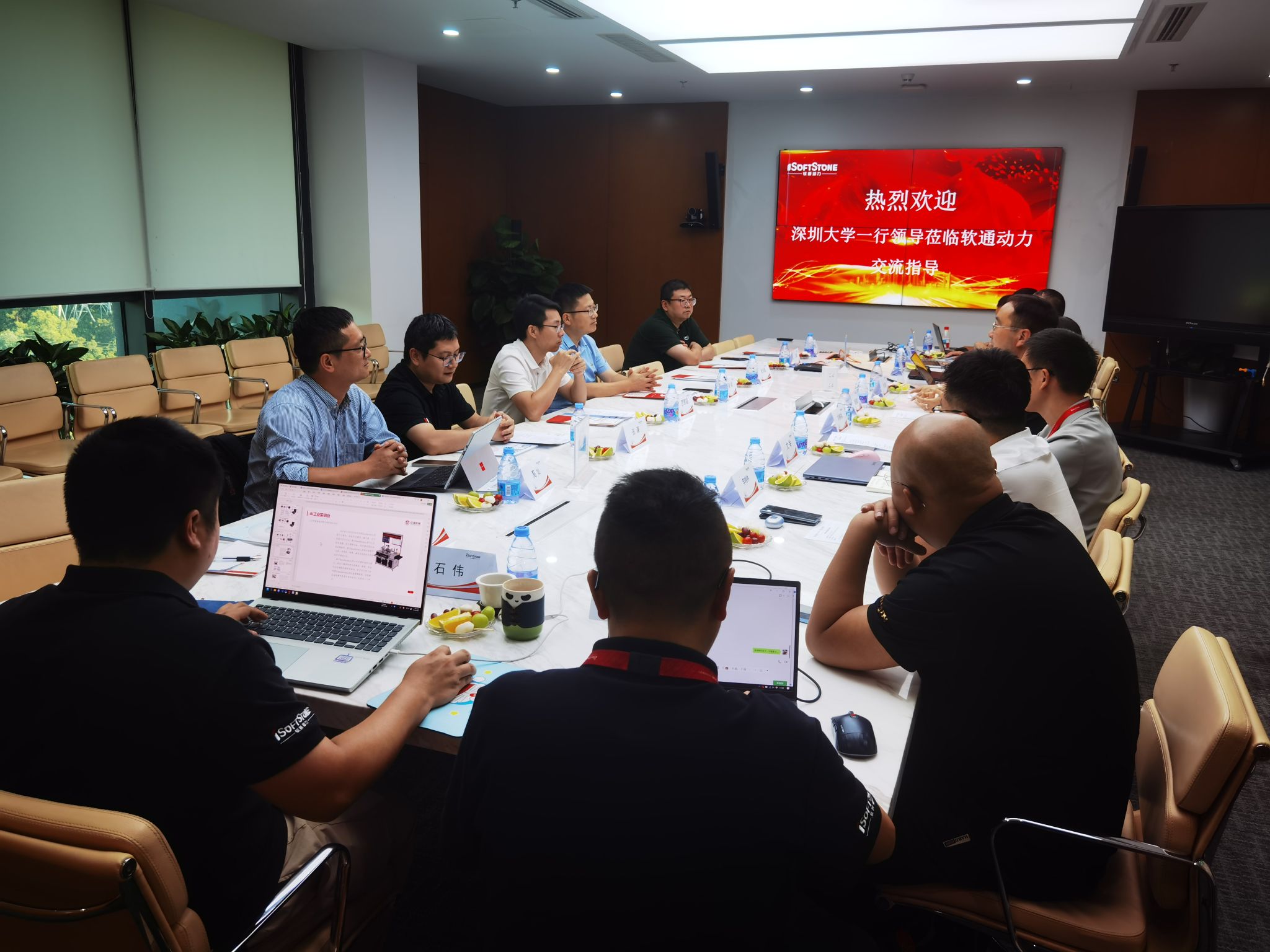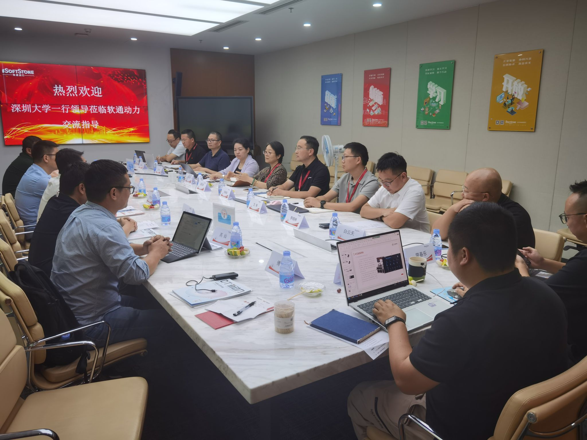10月15日下午,我校鸿蒙生态人才培养协同中心组织相关学院的领导及教师一行8人,在信息中心党总支书记秦斌的带领下,前往软通动力信息技术(集团)股份有限公司参观交流,受到软通集团高级副总裁秦张波、软通教育产品研究院副院长刘静及部门负责人的热忱接待。我校参加活动的还有物理与光电学院副院长罗景庭、电子与信息学院副院长张沛昌、机电与控制工程学院办公室主任王鑫、计算机与软件学院高灿、数学科学学院信息系副主任张谦、数学科学学院郑海虹等。