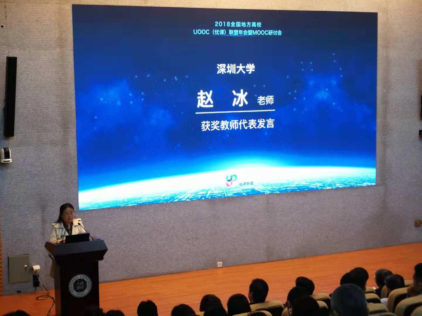 “高等数学A”主讲教师赵冰教授代表品牌MOOC获奖者发言,赵老师分享了几点体会:首先要建设一个好的团队,分工合作,各司其长;其次是重视督促、引导机制,避免重视频、轻功能;最后是加强线上教学服务,积极交流互动,提高用课的效果。其中教学设计是关键,具体课程要具体分析,要体现课程特色。课程的教学实践表明,线上、线下相结合的混合式数学模式,对提高教学质量起到了很好的作用。该课程自上线四年来受到越来越多学生的欢迎,也引起了专家和同行的关注。