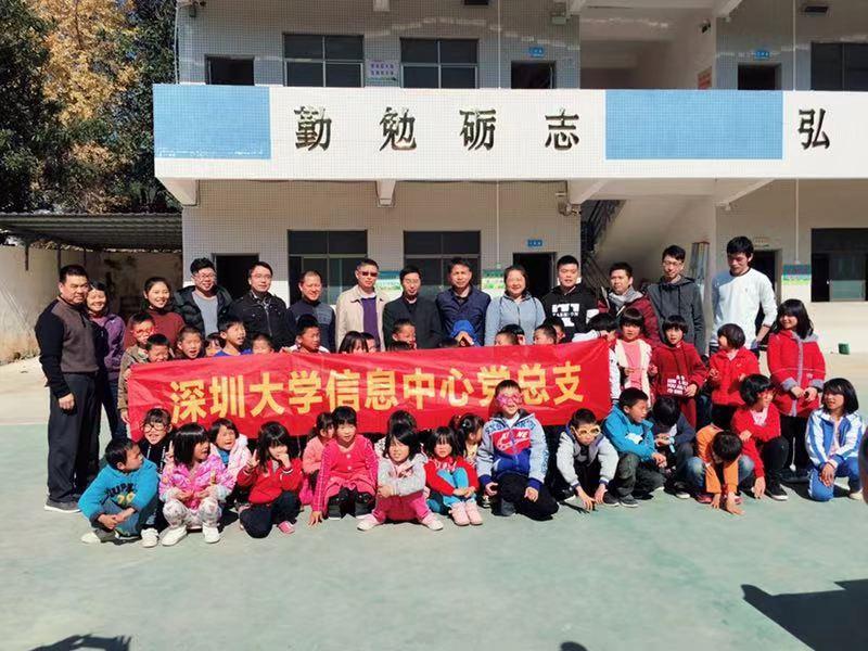 2018年12月18日,深圳大学信息中心党总支一行13人,组成一支扶贫特别行动小组,在王又民书记、江魁副主任的带领下,前往对口帮扶村——河源市和平县俐源镇曲潭村开展扶贫慰问活动,同行的还有华拓科技的刘刚总经理、鸿普森公司的技术人员。