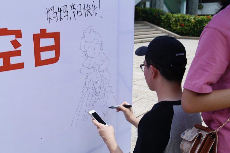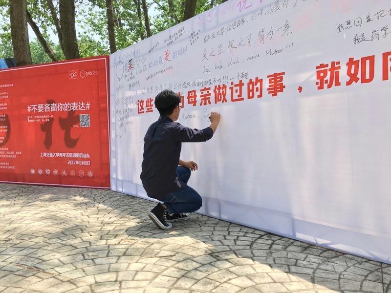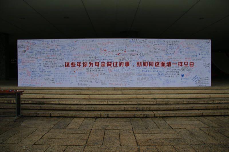 在活动现场领取拉花,写下想对母亲说的话,然后抽拉花丝带变成一朵精致的花,并贴上白墙,弥补这些年对母亲留下过的空白;等白墙被拉花贴满;或者写下准备为母亲做一件事,哪怕再小,它的分量都是沉甸甸的爱。