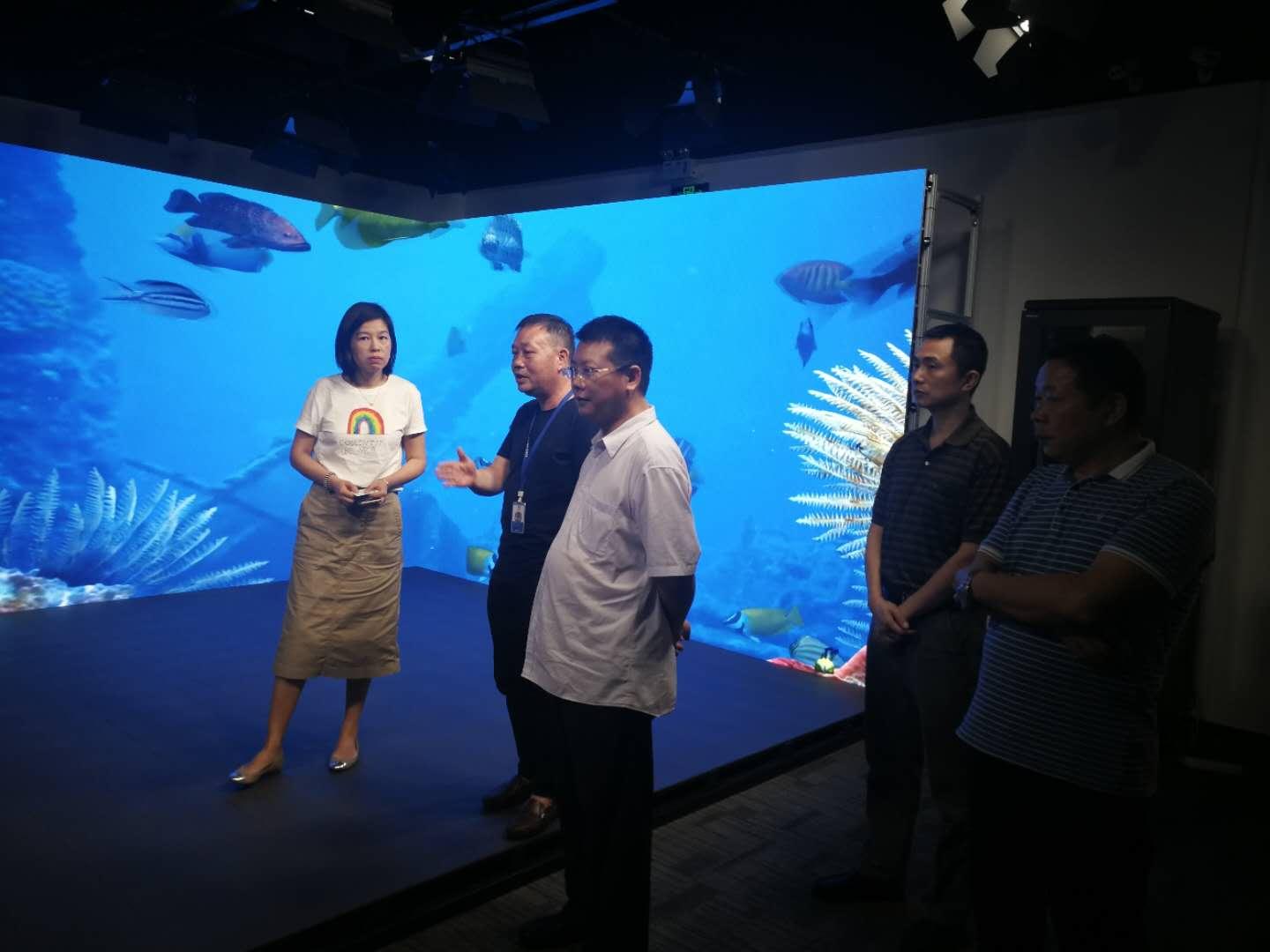 在联建光电,王志强主任饶有兴致地观看了该公司的重点产品混合现实演播平台的演示,该也是一家专业提供LED显示系统解决方案的高科技企业,该公司以其雄厚的LED 显示技术、多项独有的专利技术,赢得了国内外众多客户的信赖。当王志强主任了解到联建光电的LED大屏目前实现了近乎完美的180度的超广视角以及巧妙的温控设计,也不禁点头称赞。