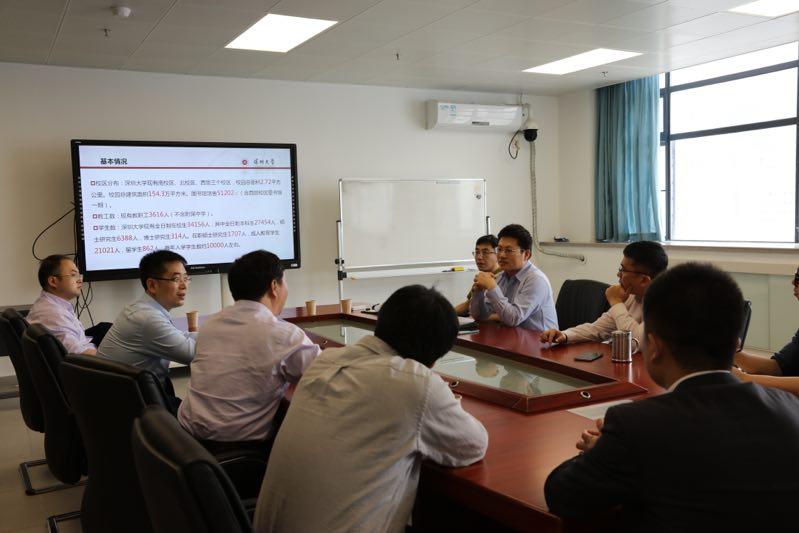 秦副主任和江副主任介绍了我校智慧校园发展历程、建设内容、使用情况、校区间网络架构、无线网络设施情况,随后双方在智慧校园建设、服务、网络、校园卡等方面开展交流和探讨,结束交流后,西北大学一行饶有兴趣参观了信息中心南校区理工楼新建机房,最后实地考察了我校平安校园入门采用人脸、刷卡、虚卡扫码高效登记场景。