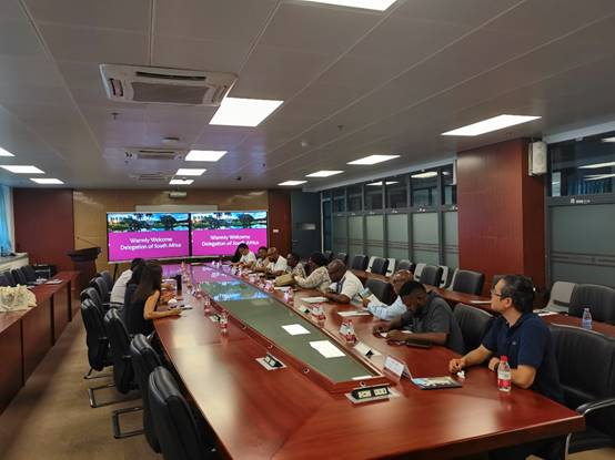 韩水仙主任首先对南非高校代表团的到来表示欢迎,并通过学校的英文宣传片让代表团成员对我校的发展历程、现状以及未来愿景有了初步了解。随后,韩主任详细介绍了学校办学优势,以及在人才培养、科学研究、成果转化和产教融合等方面取得的突出成绩。接着,陈昊主任对学校的信息化建设与智慧校园建设进行了介绍,包括数字基座、智慧教室建设、校园卡电子化、智慧校园架构、数据中台以及信息化规划等具体情况。