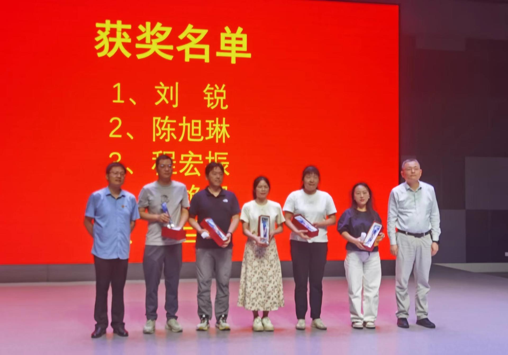 为总结主题教育成果,5月29下午,中心党总支利用开展党课学习的机会,在致理楼STUDIO演播厅举行主题教育优秀调研报告颁奖仪式。在颁奖仪式上,总支书记秦斌、主任陈昊为获奖者一一颁奖。