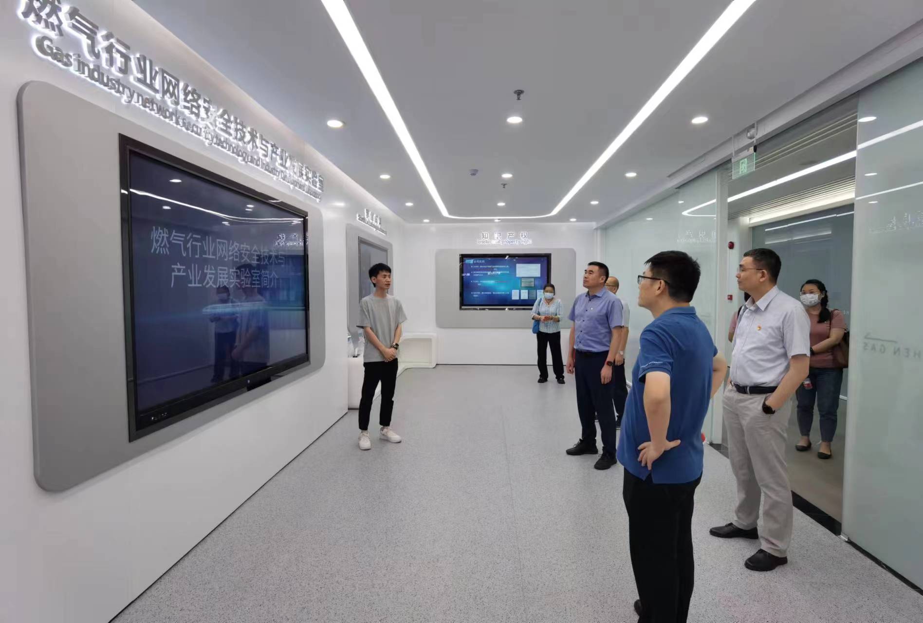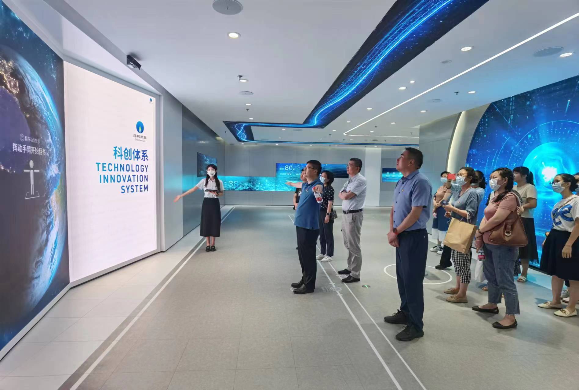 最后,中心党员在张静的带领下参观了深圳燃气的调度中心、党建展厅、科创展厅、网络安全技术与产业发展实验室以及网络机房。宽敞明亮的展厅、现代化的信息设施、富有声光电的酷炫效果、设计巧妙的展示手段,给党员同志们留下了深刻的印象。在调度中心,讲解员详细演示了指挥调度的过程,党员同志们被深圳燃气科学化、专业化、智能化、精细化的工作理念所折服。目前深圳燃气正从单一燃气供应向清洁能源综合运营转型,从产业集团向产业投资控股集团转型,正在朝着多元化、开放型、智慧化的目标阔步前进!