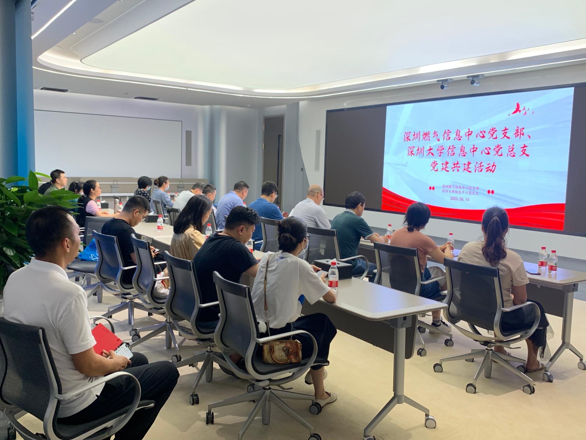 6月14日,中心党总支22名党员来到深燃大厦云端会议室,与深圳燃气信息中心党支部开展党建共建活动。活动由秦斌书记带队,陈昊主任、钱恭斌副主任一同参加了活动,深圳燃气信息中心张静、程建、潘瑜、邓宣等同志参加了接待。