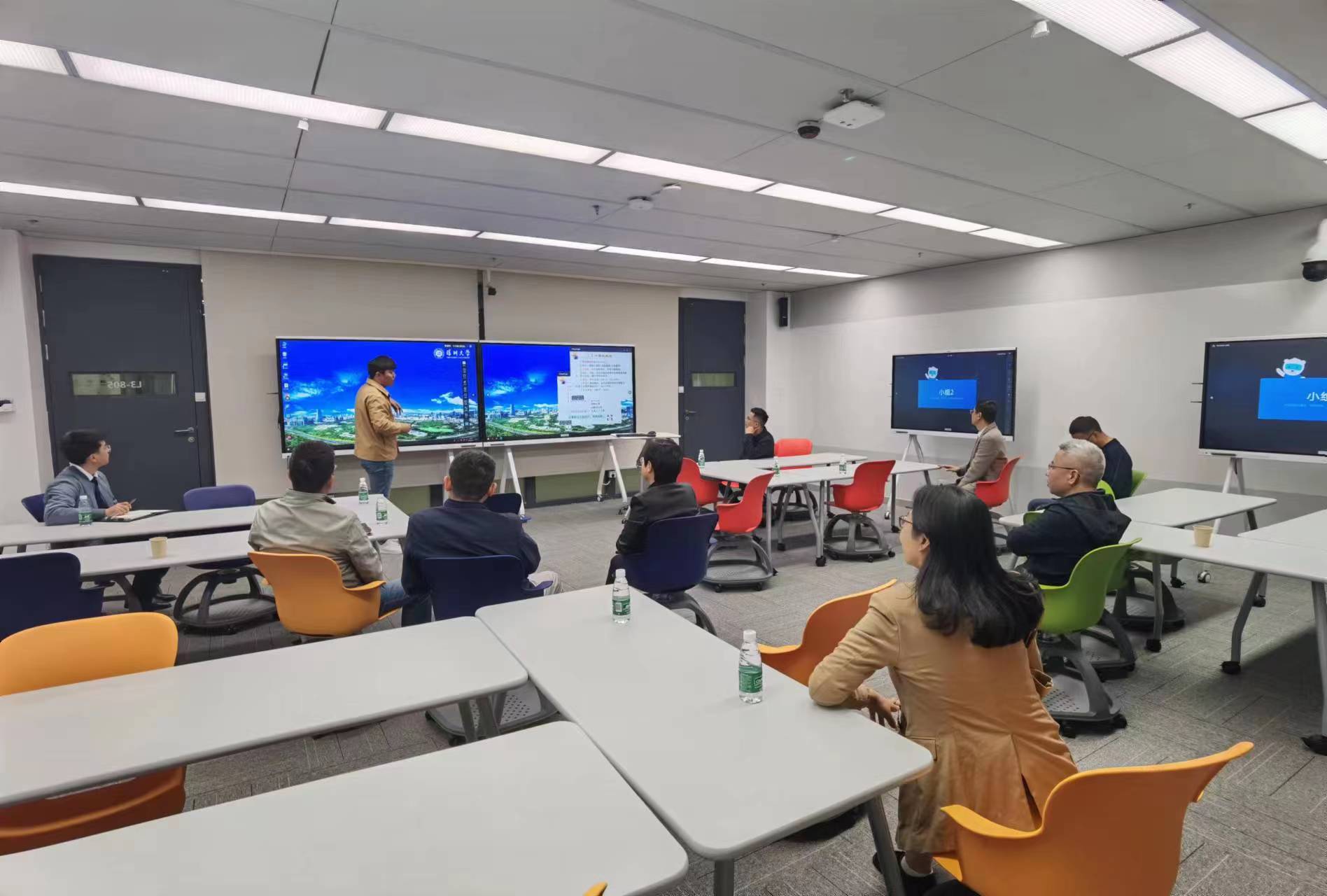 陈昊对刘亚峰一行的来访表示欢迎,他向来宾简要介绍了深大的智慧教室建设情况,并与来宾一同观看了中心影视部制作的《开启智慧教学新时代》专题片,向来宾深入阐释我校智慧教室的建设思路和教学理念。