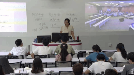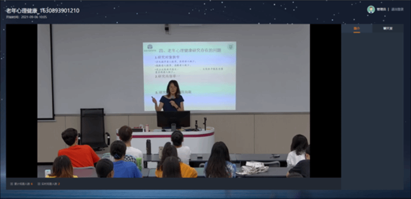 上午,在粤海校区致理楼崭新的L3-404教室里,师范学院关青老师正神采飞扬讲授“老年心理健康”课程,同时远在10+公里之外的丽湖校区四方楼西204教室,也有不少同学在聆听她的课程。关老师有时会询问丽湖校区的同学能否听得清楚,如果有问题的话也可以在主控屏上申请发言。