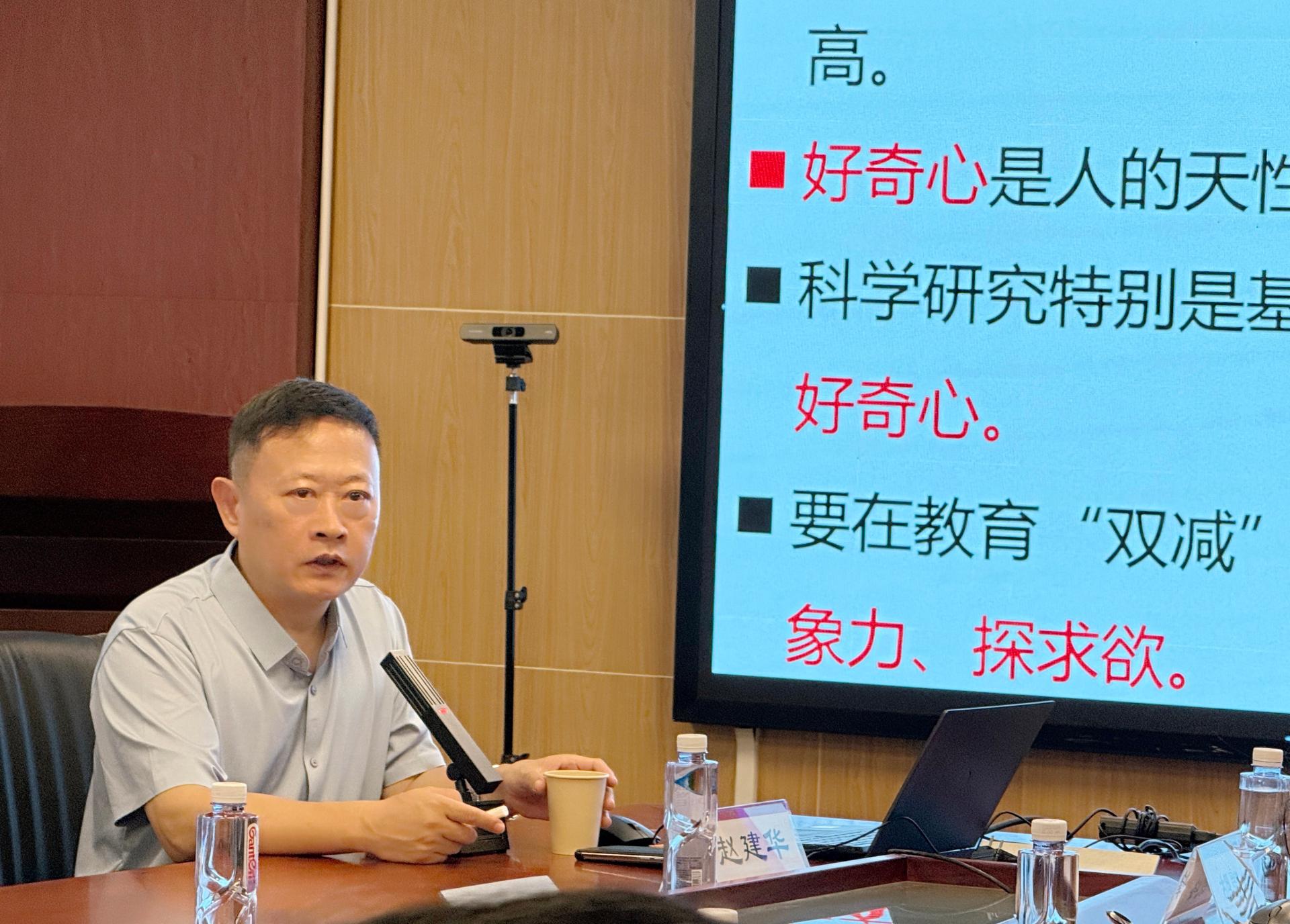 2025年6月17日上午,南方科技大学未来教育研究中心副主任、人工智能教育研究中心主任、博士生导师赵建华教授来我中心作“人工智能时代的未来教育”学术报告,中心领导陈昊主任、秦斌书记、钱恭斌副主任以及各部门负责人、技术骨干等20余人参加了报告会,会议由陈昊主持。
