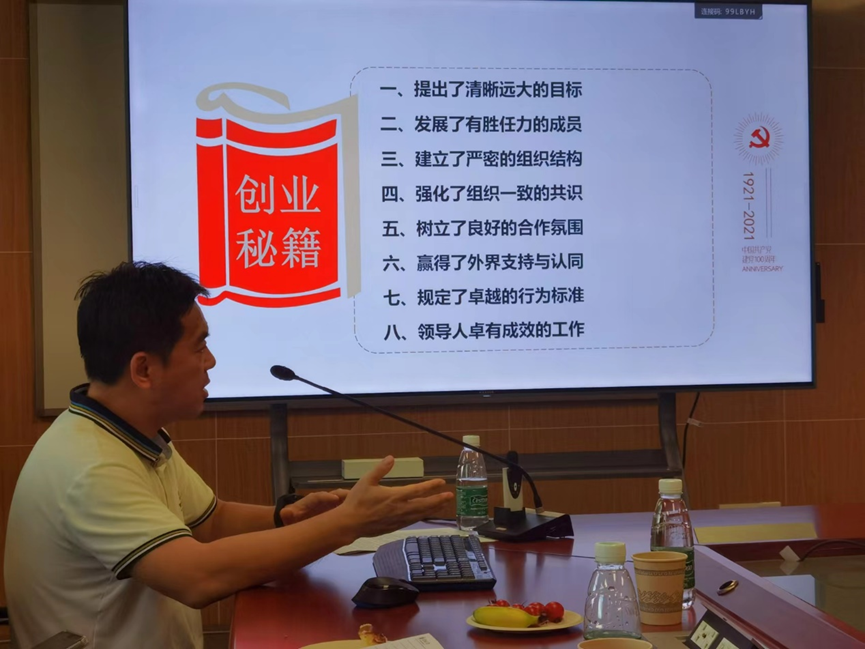 邱妙芳书记最后做总结点评,指出我们创业也好、干事业也好,要有清晰远大的目标,结合到日常做事情干工作,确定好目标之后,就要想办法踏踏实实一步一步去完成。刘锐老师今天的讲座是讲中国共产党的创业史,相信对大家都很有启发。我们看似很普通很平凡的岗位,只要认真踏实,定好岗位目标以后努力去做,同时争取同事们的支持和帮助,一样可以取得很好的业绩。邱书记希望在座的党员要学以致用,把所学的理论知识和党史知识运用到自己的工作实践中,做到知行合一。