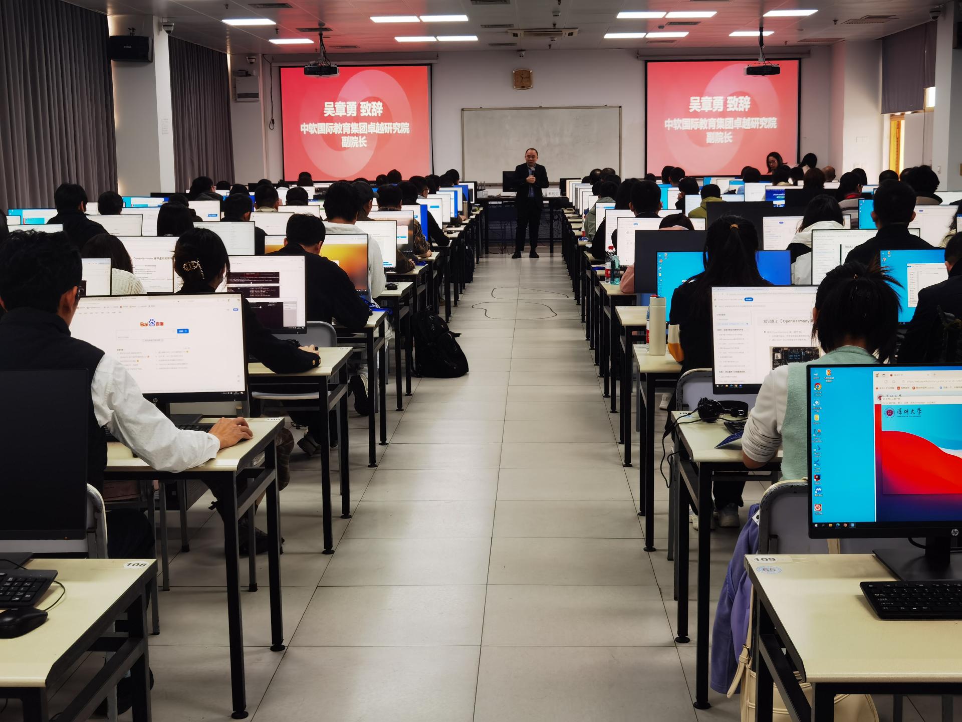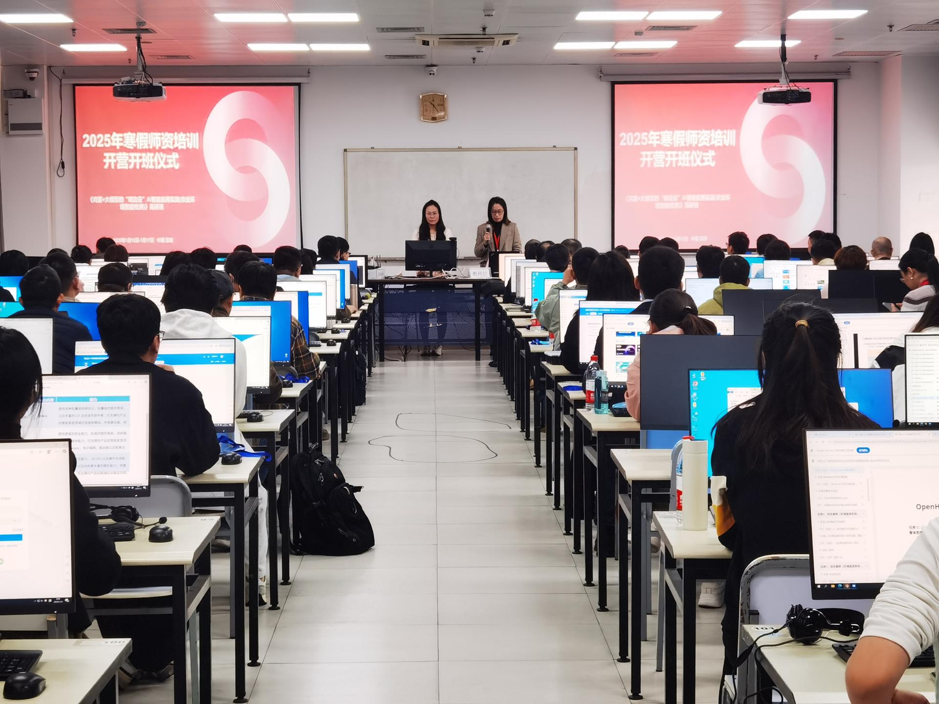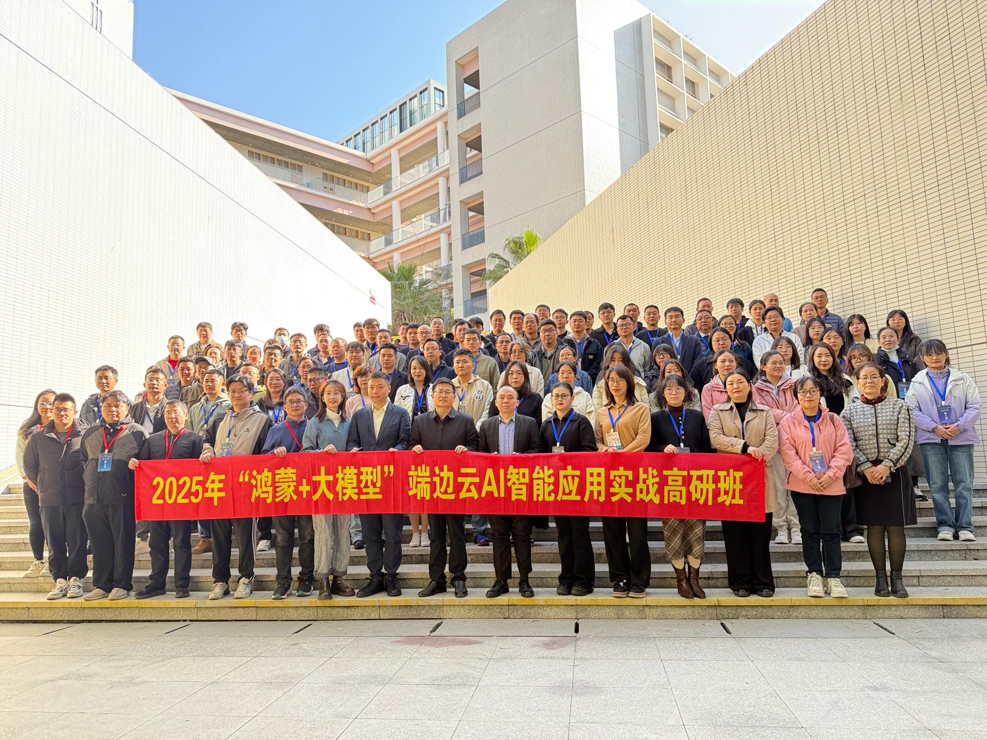 1月13日上午,鸿蒙+大模型“端边云”AI智能应用实战高研班在我校开班,该高研班由全国新一代信息技术创新行业产教融合共同体主办,中软国际、深圳大学、广东科技职院联合承办。出席开班仪式的领导和嘉宾有中软国际教育卓越研究院副院长吴章勇、华为终端开发者布道与营销运营总监夏影、深圳大学信息中心党总支书记秦斌。来自全国高校物联网技术、计算机科学与技术、电子信息技术、人工智能、大数据、软件工程等相关专业方向的专业带头人、骨干教师及相关技术管理人员150余位教师参加了培训。
