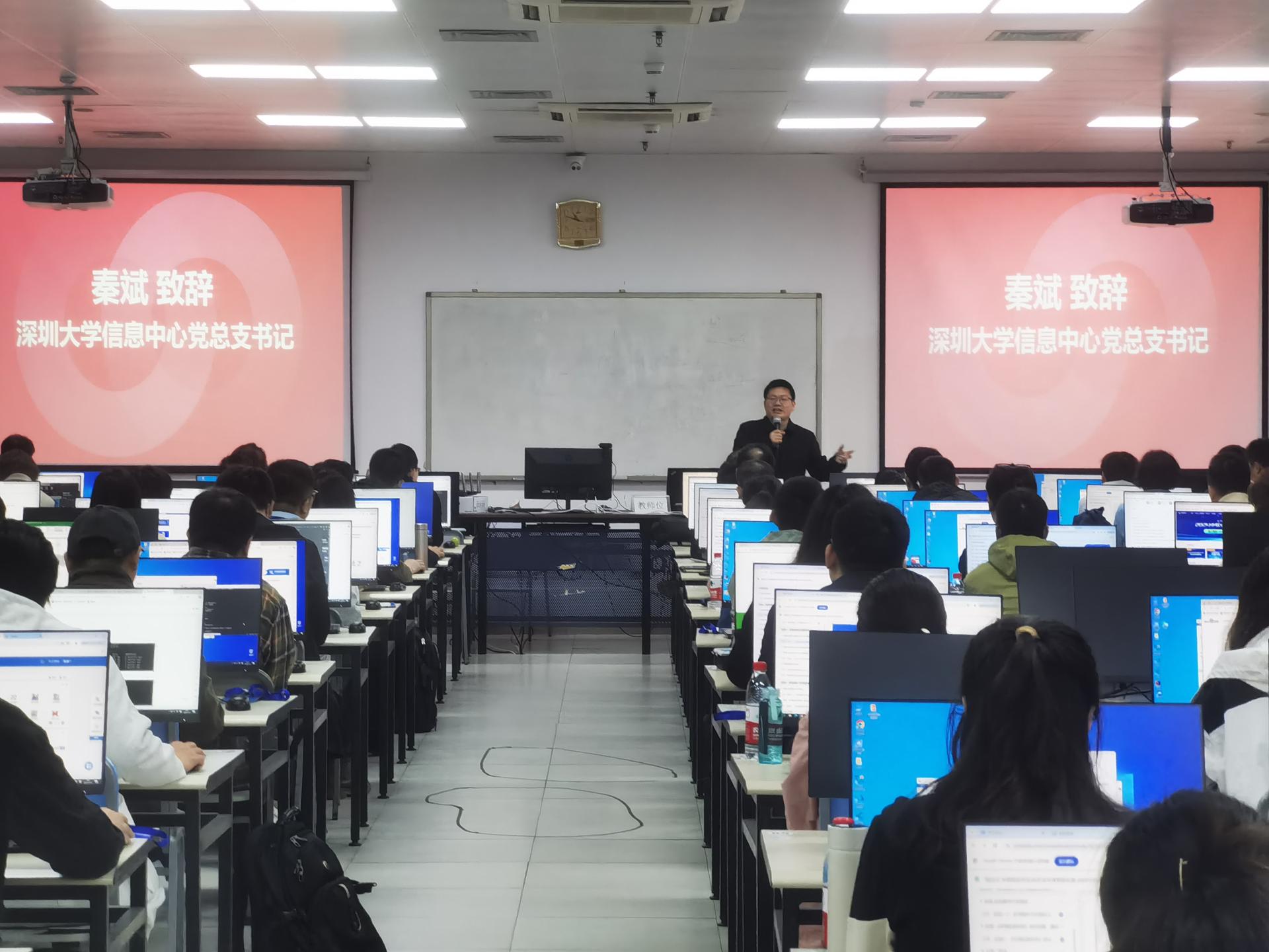 在开班仪式致辞中,秦斌向培训班学员介绍了深圳大学的发展历程,表示深圳大学具有北大、清华和人大等名校的基因传承,建校40年来,与特区发展同频共振,已成为内地进步最快的大学,教学、科研实力显著增强,学科建设取得重要进展,目前全校已有20个专业进入ESI全球前百分之一,4个专业进入ESI全球前千分之一,有一级学科博士点26个。他还向学员介绍了举办鸿蒙培训班的缘由,表示为响应国家信创发展战略及《深圳市支持开源鸿蒙原生应用发展2024年行动计划》,我校信息中心联合电子与信息工程学院、计算机与软件学院等学院相关专业,协调鸿蒙生态产业链中的明星企业,组建了“深圳大学鸿蒙生态人才培养协同中心”,将联手打造鸿蒙生态科技展厅、鸿蒙实训实验室与人才培养产学研基地,促进各学科人才培养、课程体系完善、学科竞赛与专业考证。