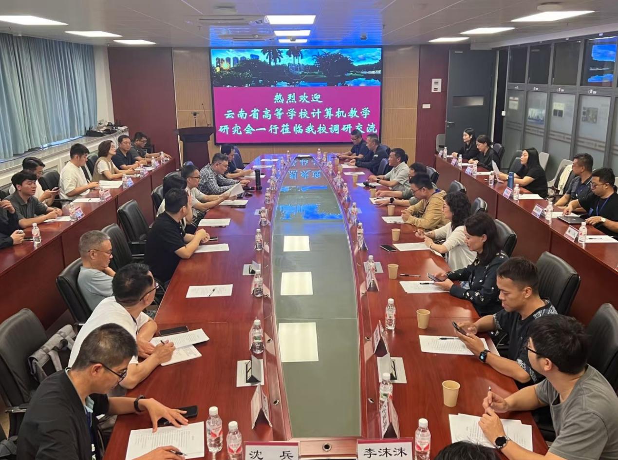 2024年11月14日下午,云南省高等学校计算机教学研究会来自11所高校30余名同行莅临我中心进行调研交流,我中心主任陈昊、副主任江魁、总工程师徐明及中心主要技术骨干参加了会谈。