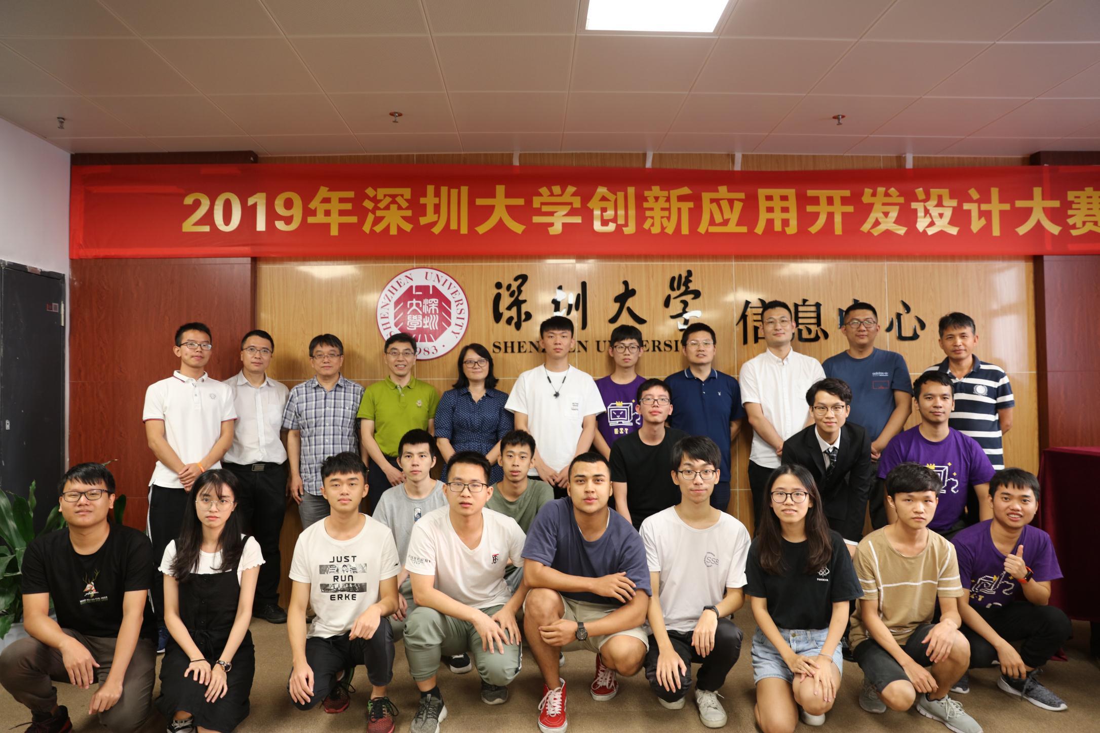 创新应用开发设计大赛由深大信息中心和腾讯微校具体承办,深大学生MOOC(慕课)协会、深大视觉传达协会协办,大赛设小程序开发和微信校园卡卡面设计两个分赛,评审专家来自腾讯产品经理及团队、深大信息中心、学生工作部以及师范学院、传播学院、艺术与设计学院的老师。在最后的颁奖仪式上,信息中心领导邱妙芳书记、秦斌副主任、江魁副主任和颁奖嘉宾依次给获奖团队和个人颁奖,并合影留念。