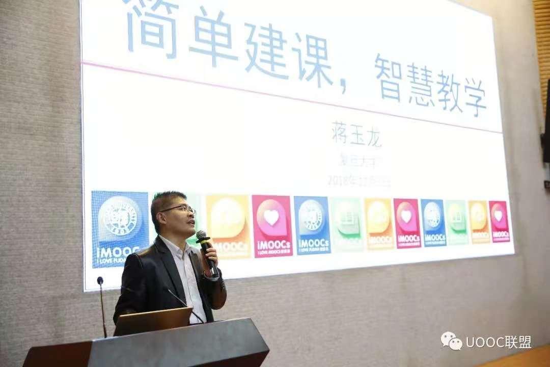 复旦大学蒋玉龙教授以《简单建课,智慧教学》为题作了主题报告,蒋教授是复旦大学卓学计划学者,曾获复旦大学“智慧教学之星”和“十佳教师”称号。蒋教授从他的“原位翻转”教学实践中总结出自助简单建课,实现翻转课堂的教学方法,实现了学生有效增负,助力中国金课的目的,同时指出了实施教学的原则,应从课时驱动向任务驱动、被动学习向主动学习转变,应以学生为中心、培养能力、提质增效、智慧教学。
