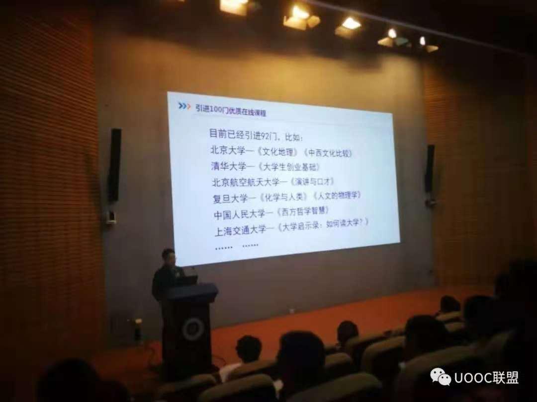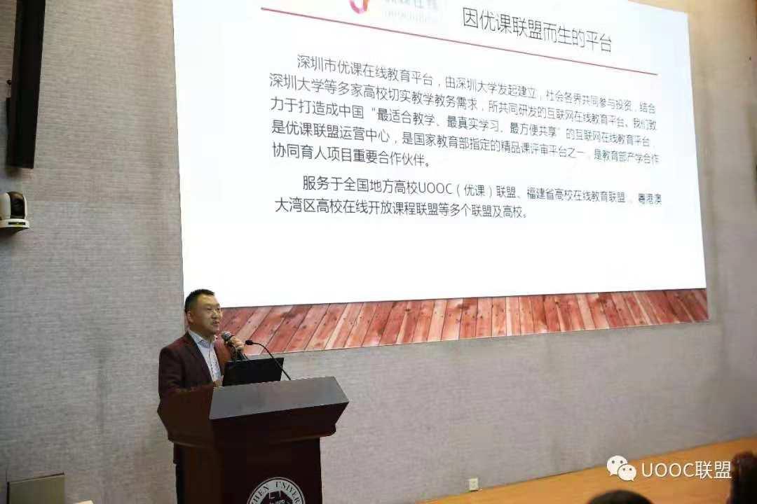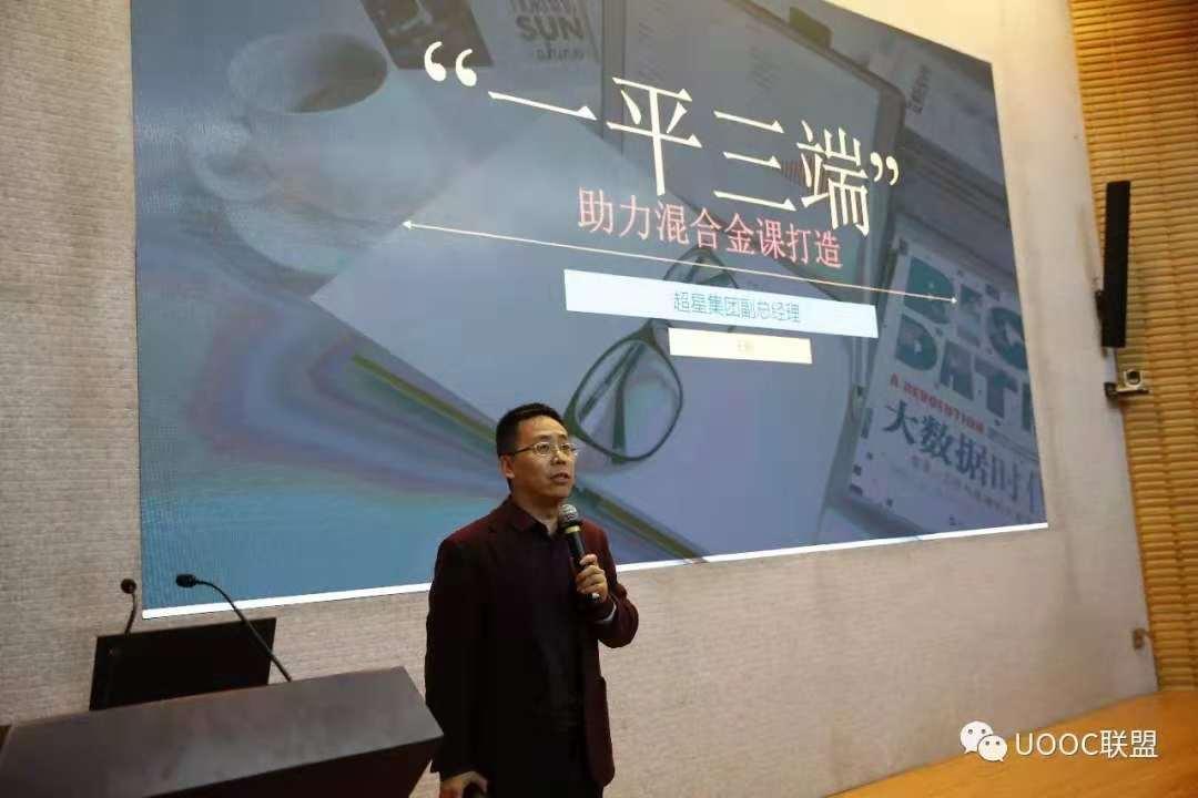 优课联盟从筹建到起步和发展的过程中,超星集团一直给予了很多的帮助。多年来,超星集团一直坚持做通识教育课程,逐步树立了中国通识教育品牌。超星集团华南区王毅总经理作《“一平三端”助力混合金课打造 》的主题报告,王总阐述了从建设混合式“金课”智慧教学环境、建设线上线下混合式“金课”的理念出发,打造的“一平三端”教学生态系统,实现了课程设计精致化、课程呈现立体化、教学活动多样化、教学模式创新化、教学评测过程化、教学管一体化。