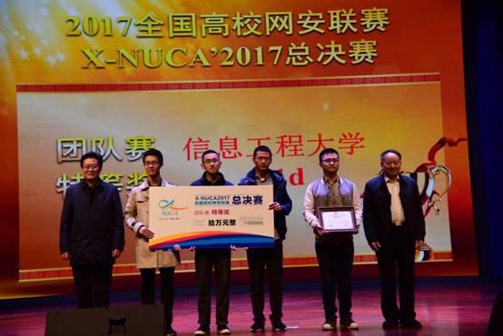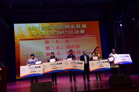 在过去的一天半中,20支来自国内各高校的网络安全精英战队在网络靶场中激烈鏖战,上演了一场精彩的攻防对决,最终诞生团队赛特等奖1名、一等奖2名、二等奖3名、三等奖5名;以及个人赛前五名、最佳指导老师5名。其中,信息工程大学f61d战队获得团队赛特等奖;南京航空航天大学Asuri2017战队队员张一白获个人赛第一名。同时,经大赛技术委员会综合评定,信息工程大学彭建山老师获最佳指导老师第一名。沈昌祥、方滨兴、陈国良院士及中央网信办、中国科学院、深圳市政府、中科院信息工程研究所、深圳大学等单位的领导为获奖团队和个人颁发了荣誉证书和奖金。