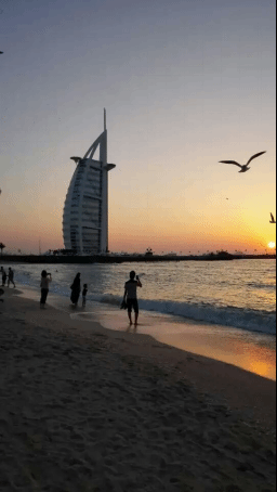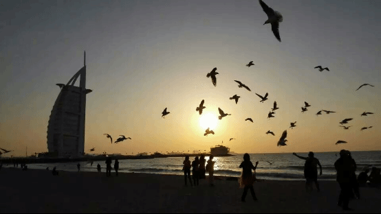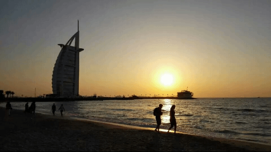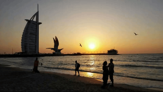 我们离开阿布扎比来到迪拜的卓美亚海滩看日落,我最喜欢看日落,然后来到DuBai Mill的外面,观看迪拜塔的夜景和音乐喷泉。
