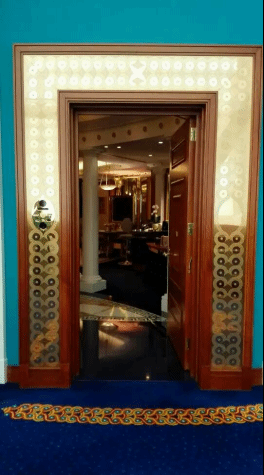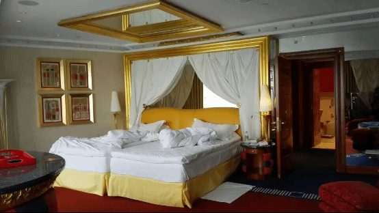 以前,花80美金可以参观,现在你有钱也别想!因为根本没有房间让你参观,永远都是满房,想住都要提前几个月预定。酒店的套房,最小面积的房间都有170平方米;而最大面积的皇家(总统)套房有780平方米!而且全部是落地玻璃窗,随时可以面对着一望无际的阿拉伯海。每个房间,会有一个管家等着跟你解释房内各项高科技设施如何使用,因为酒店豪华尊贵的服务宗旨就是务必让房客有阿拉伯油王的感觉。