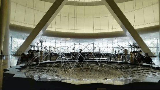 一进饭店门的两大喷水池,不时有不同的喷水方式,每一种皆经过精心设计,约15~20分钟就换一种喷法。