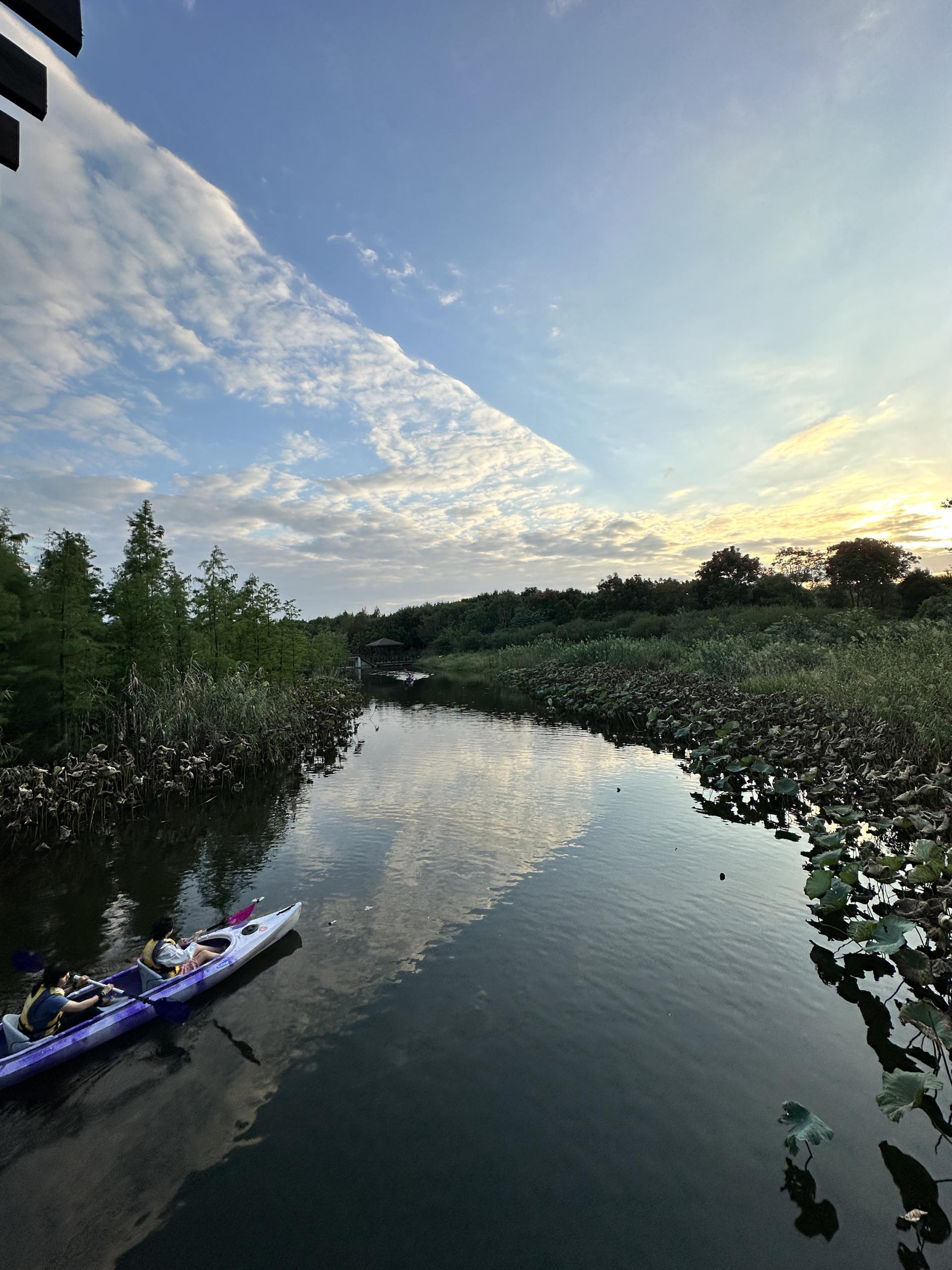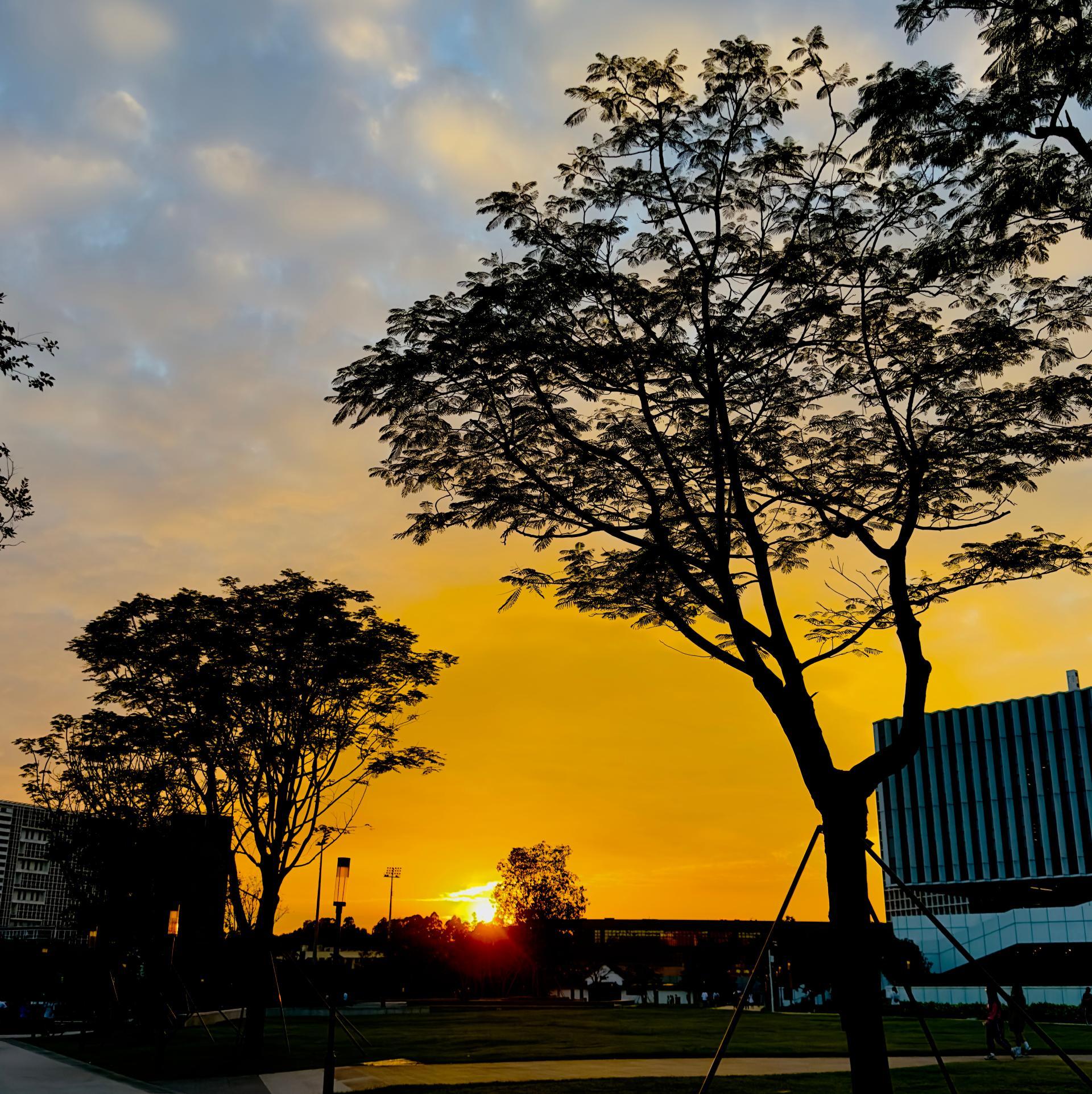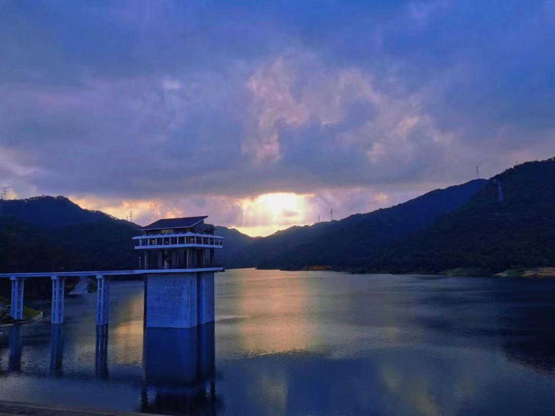 24号作品:《梅林水库散步,偶遇夕阳,余晖洒在水面上,增添了几分秋天的萧瑟感》
