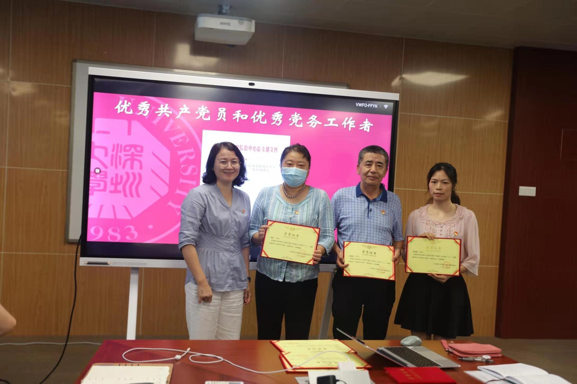 2021年7月2日上午,沧海校区致理楼L3-1115的会议室。在庆祝中国共产党成立100周年之际,信息中心党总支举行了一个简短而隆重的表彰大会,同时举行了“讴歌新时代”主题作品征集评选和党史知识竞赛颁奖仪式。中心领导邱妙芳、王志强、秦斌、江魁以及中心全体工作人员共80余人参加了大会。