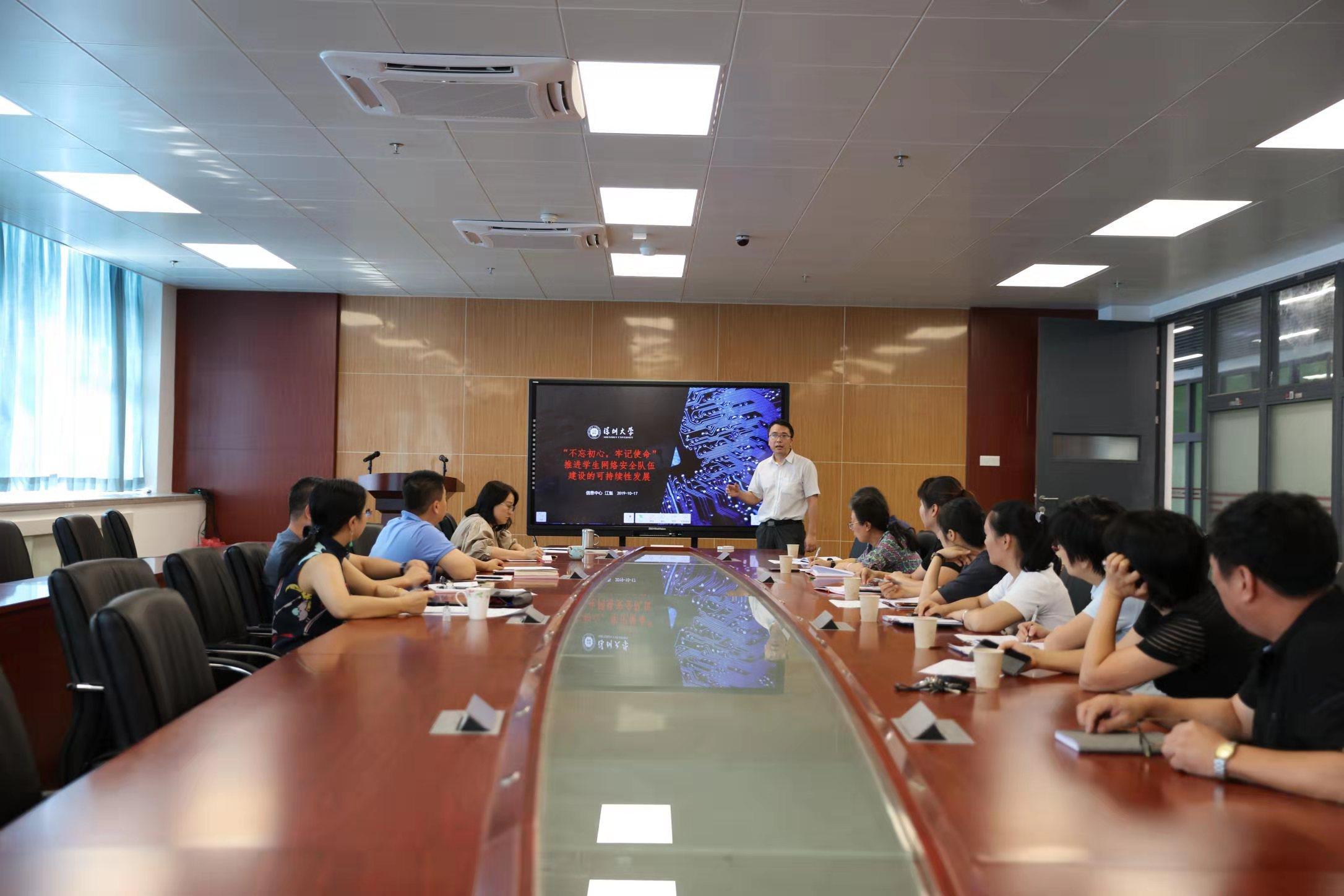 根据深圳大学党委“不忘初心、牢记使命”主题教育要坚持问题导向原则,信息中心总支委选择了“我校网络安全态势和应对策略”作为“不忘初心、牢记使命”主题教育的调研题目。江魁介绍了调研的内容,包括:技术层面,了解网络基础设施安全、应用系统安全、内容安全、网络意识形态等方面的问题;对我校网络安全防控策略与措施的建议;人才队伍、管理制度;中心相关业务部门需要解决的重点、难点问题等。