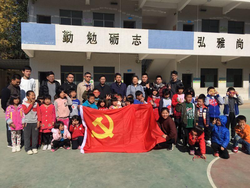 阳光助学,暖心行动,让爱无限传递,让爱“无线”连接。在鲜艳的党旗旁,扶贫小组的成员和孩子们一起合影留念。