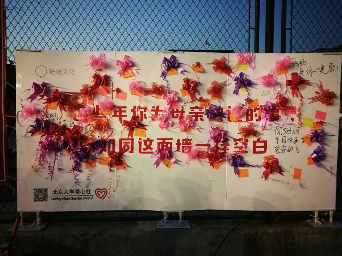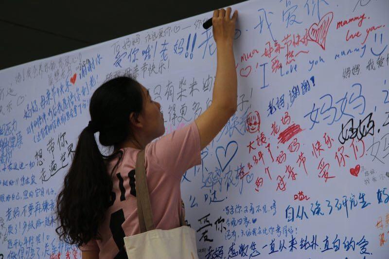 在活动现场领取拉花,写下想对母亲说的话,然后抽拉花丝带变成一朵精致的花,并贴上白墙,弥补这些年对母亲留下过的空白;等白墙被拉花贴满;或者写下准备为母亲做一件事,哪怕再小,它的分量都是沉甸甸的爱。