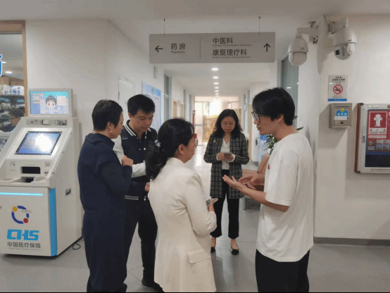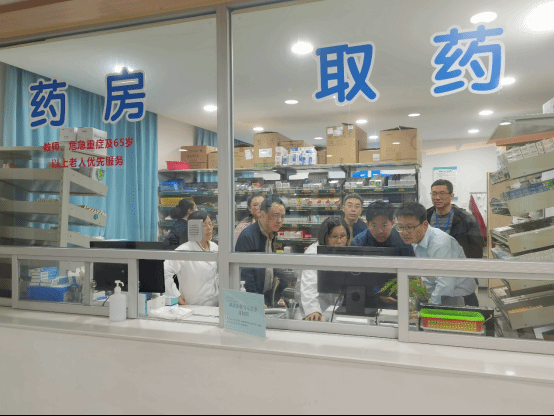秦斌及软件开发部部长徐明老师、创新教学部部长刘锐、校园卡管理部部长龚黎旰、副部长刘佳敏,来到药房详细了解药品管理系统进销存流程及跨部门跨系统流转的情况。由于医院用到的医疗信息系统很多,包括门诊挂号、电子病历、患者管理、药品管理等等,而药品管理又包括药品的采购、入库、分发、销售、库存管理等诸多环节,秦斌及党员同志们耐心倾听,一起探讨、思考解决办法。