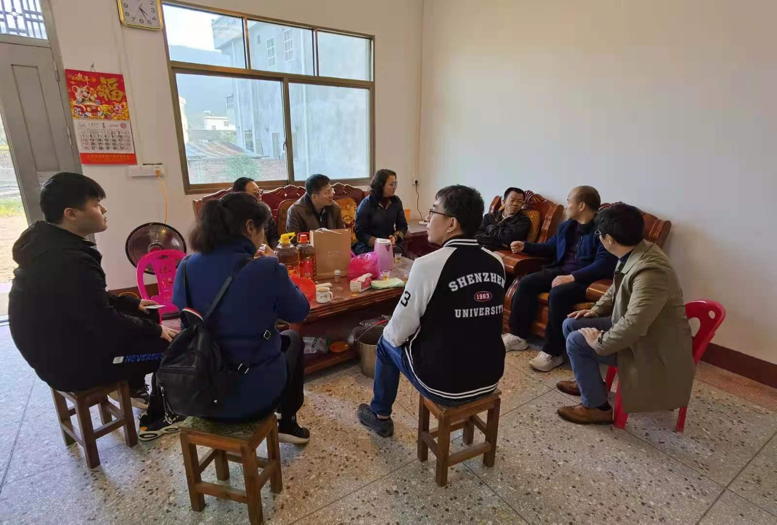邱妙芳书记、秦斌副主任一行来到了新盖好的村委和党群活动中心,和深大驻村工作队队长李小平老师以及部分村民进行了座谈,听李小平老师介绍我校这几年的扶贫举措和扶贫工作队所做的工作,了解曲潭村的变化、乡风民情和新组建的合作社等情况。大家畅谈曲潭村的过去和现在,为曲潭村的未来出谋划策……