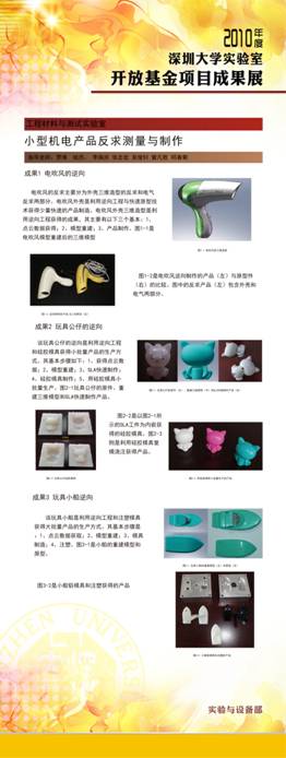 项目名称:小型机电产品的反求测量与制作 项目负责人:李南庆 指导教师:罗烽 立项年度:2009年度 |
